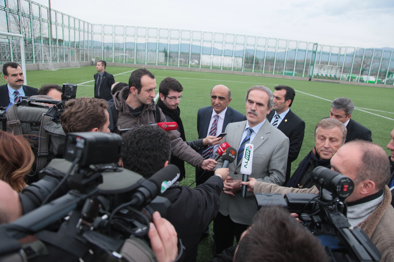 Büyükşehir Belediye Başkanı Recep Altepe’de Bursa’yı marka kent haline getirme hedefleri doğrultusunda Bursaspor’un zaten bir marka olduğunu, bunun marka değerini yükseltmek için ellerinden geleni yaptıklarını söyledi. Bu doğrultuda günlük değil uzun vadeli yatırımlar düşündüklerini ifade eden Başkan Altepe, “Bursaspor daha iyi noktalarda olmalı. Sadece şampiyonluğa oynarken değil, bugün de takımımızın yanında olduğumuzu söylemek istedim. Bursaspor’un semt takımı değil, şehir takımı olduğunu unutmadan desteklerimizi bundan sonra da sürdüreceğiz. Ulaşımla ilgili düzenlemeyi programımıza aldık. Bunun yanında tesislerin çevresine yapacağımız halka açık tesislerle burayı vizyon bir bölge haline getireceğiz” dedi.