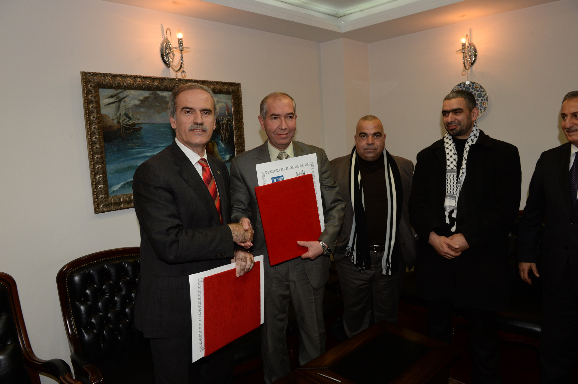 - EL HALİL BELEDİYE BAŞKANI DAVUT ZATARİ, BURSA’NIN GEREK TARİHİ GEREKSE EKONOMİK BAKIMDAN GELİŞMİŞ BİR KENT OLDUĞUNU BELİRTEREK, KARDEŞLİK İLİŞKİLERİYLE İKİ ÜLKE ARASINDAKİ İŞBİRLİĞİNİ DE EN ÜST SEVİYEYE ÇIKARMAK İSTEDİKLERİNİ VURGULADI.