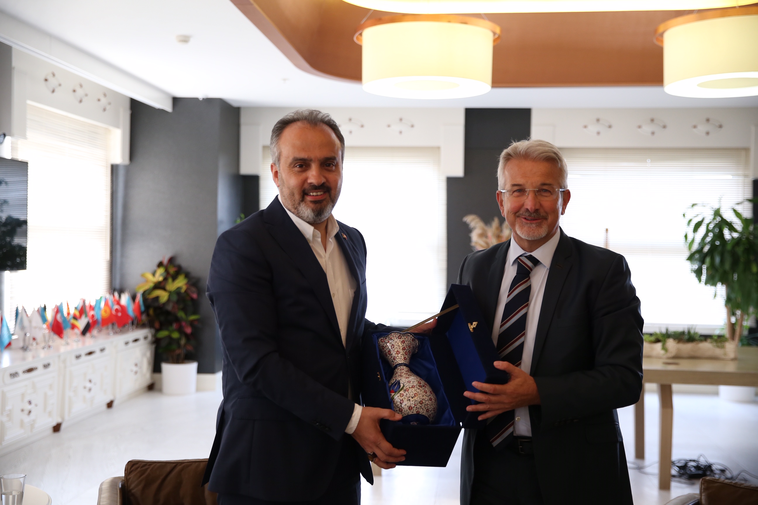 BURSA – Bursa Büyükşehir Belediye Başkanı Alinur Aktaş, Nilüfer Belediye Başkanı Turgay Erdem’i ziyaretinde, “Farklı siyasi partilerden seçilmiş olabiliriz. Ancak şehri daha yaşanabilir kılmak adına elimizden gelen gayreti göstereceğiz” dedi.