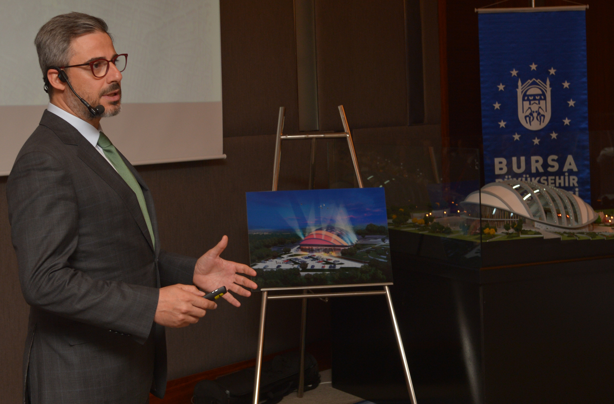 Bursa Büyükşehir Belediye Başkanı Recep Altepe, Bursa Kültür Sanat ve Turizm Vakfı (BKSTV) organizasyonuyla Hilton Otel’de gerçekleştirilen ‘Yeni Açıkhava Tiyatrosu’ lansman toplantısına katıldı. BKSTV Yönetim Kurulu Başkanı Fatma Durmaz Yılbirlik ile Büyükşehir Belediyesi bürokratları, BKSTV yönetim kurulu üyeleri ve İki Design Group adına Mimar Murat Kader’in de hazır bulunduğu toplantıya basın mensupları yoğun ilgi gösterdi.