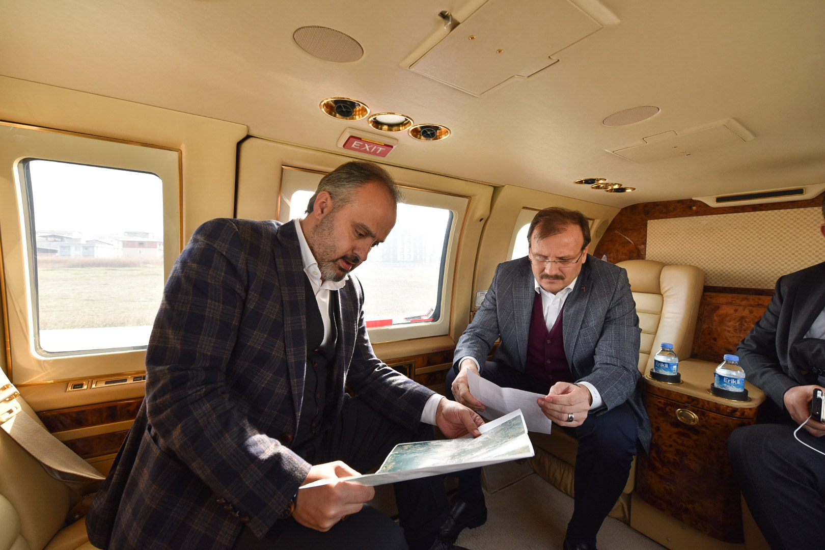 BURSA – Bursa Büyükşehir Belediye Başkanı Alinur Aktaş, Başbakan Yardımcısı Hakan Çavuşoğlu ile birlikte Bursa’da devam eden ve planlanan yatırımların yanı sıra trafikte sıkıntı yaşanan bölgeleri havadan inceledi.