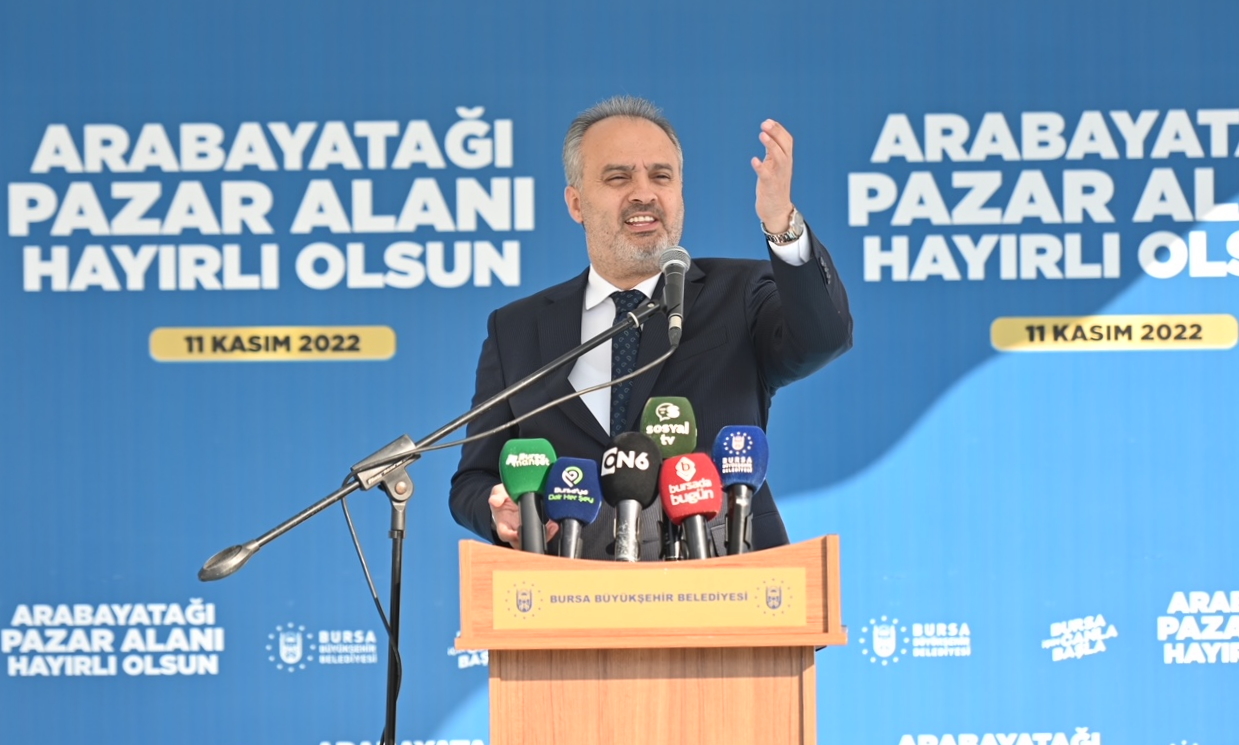 Arabayatağı Kapalı pazar alanı için düzenlenen temel atma töreninde konuşan Bursa Büyükşehir Belediye Başkanı Alinur Aktaş, 60’lı ve 70’li yıllarda büyük göç alan Yıldırım’ın hızla büyüdüğünü ve Bursa’nın en büyük ikinci ilçesi konumunda olduğunu söyledi. Yerleşimin oluştuğu bir bölgeyi değiştirmenin ve dönüştürmenin zor bir iş olduğunun altını çizen Başkan Aktaş, kentsel dönüşüm ve imar uygulamaları gibi zor işleri çözüme kavuşturmak için çalıştıklarını belirtti. Devlet ve belediyeler olarak üzerlerine düşen görevleri yerine getirdiklerini ifade eden Başkan Aktaş, “Bu şehir için gecemizi gündüzümüze katıyoruz. Bursa için hizmet ediyoruz. Kapalı pazar yerleri Bursa gibi gelişmiş bir şehir için olmazsa olmazdır. İnşallah Arabayatağı pazar alanını da Mayıs ayı sonu gibi bitirerek, halkımızın hizmetine sunacağız” dedi.