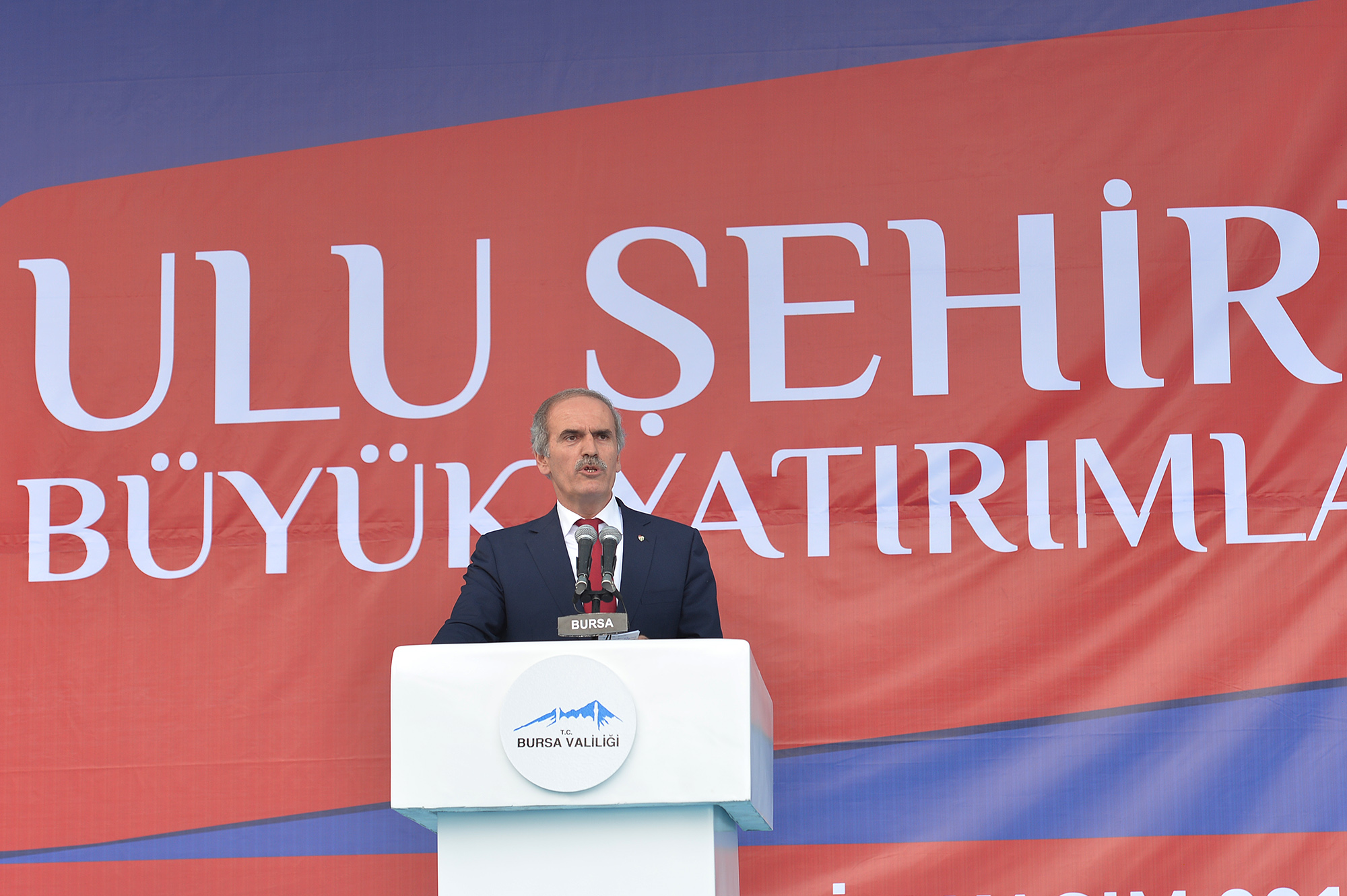 Bursa Valiliği, Büyükşehir, Yıldırım ve Osmangazi Belediyeleri ile Sağlık Bakanlığı ve Ulaştırma Bakanlığı tarafından Bursa’da yaptırılan ve 720 milyon TL’ye mal olan 21 yatırımın hizmete açılış töreni için Bursa’ya gelen Başbakan Ahmet Davutoğlu, Valilik ziyaretinin ardından Atatürk Kongre Kültür Merkezi önündeki tören alanına geldi. Bakan Davutoğlu’nun yanı sıra Başbakan Yardımcısı Bülent Arınç, İçişleri Bakanı Efkan Ala, Orman ve Su işleri Bakanı Veysel Eroğlu, Çevre ve Şehircilik Bakanı İdris Güllüce, Bursa Valisi Münir Karaloğlu ve Bursa Milletvekillerinin de katıldığı törenin açılış konuşmasını yapan Büyükşehir Belediye Başkanı Recep Altepe, hayata geçirdikleri çalışmalar hakkında kısa bir bilgi verdi. Bursa’nın tarihi günlerden birini yaşadığını ve Büyükşehir Belediyesi’nin 8 tesisinin de aralarında bulunduğu 720 milyon TL’lik 21 tesisin Başbakan Davutoğlu tarafından hizmete açılmasının gurur verici olduğunu kaydeden Başkan Altepe, Türkiye ile birlikte kentlerin de hızlı bir şekilde kabuk değiştirdiğini hatırlattı.