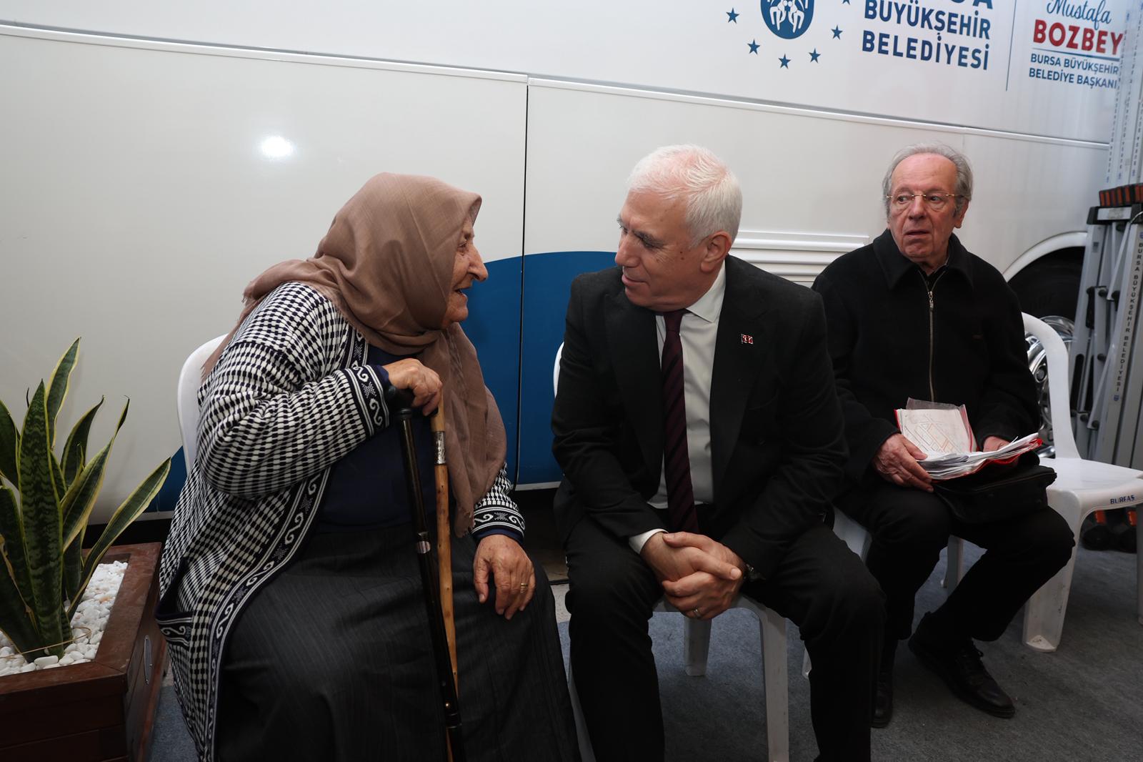 Başkan Bozbey, ziyaretlerin ardından 30 Ağustos Zafer Mahallesi’nde vatandaşların talep ve önerilerini dinledi. Alanda bulunan Sağlık Otobüsü vatandaşların muayenesini ücretsiz yaparken, iş arayanlar da Bursa İş Ofisi standında forum doldurma imkanı buldu.