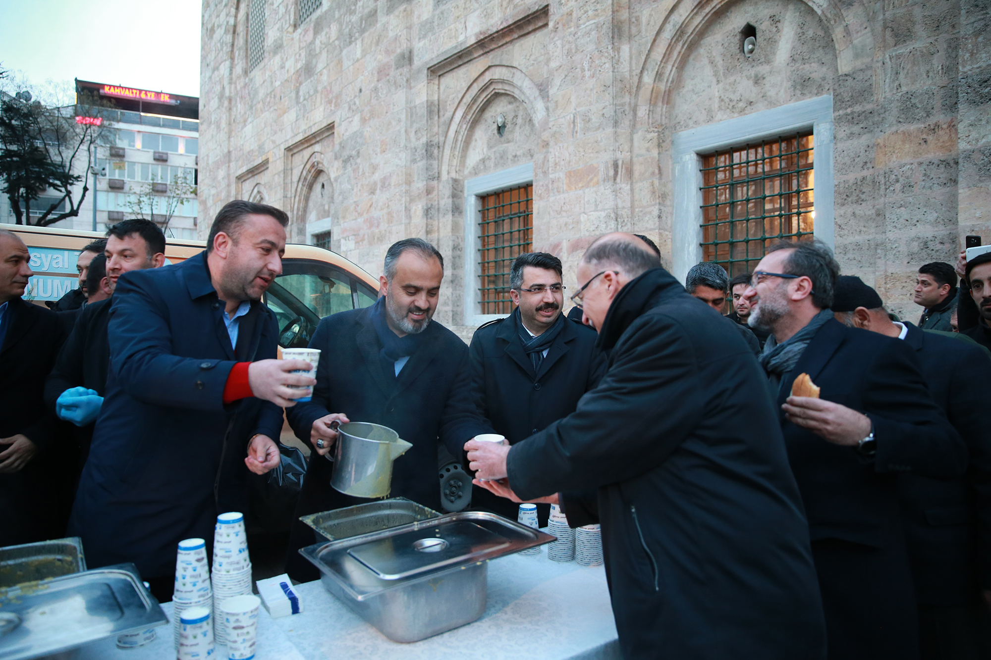 BURSA – Bursa Büyükşehir Belediye Başkanı Alinur Aktaş, seçimlerin ardından yeni dönemin ilk gününe Ulucami’de başladı. Şükür namazı ve sabah namazını vatandaşlarla kılan Başkan Aktaş, cami çıkışında vatandaşlara çorba ikram etti.