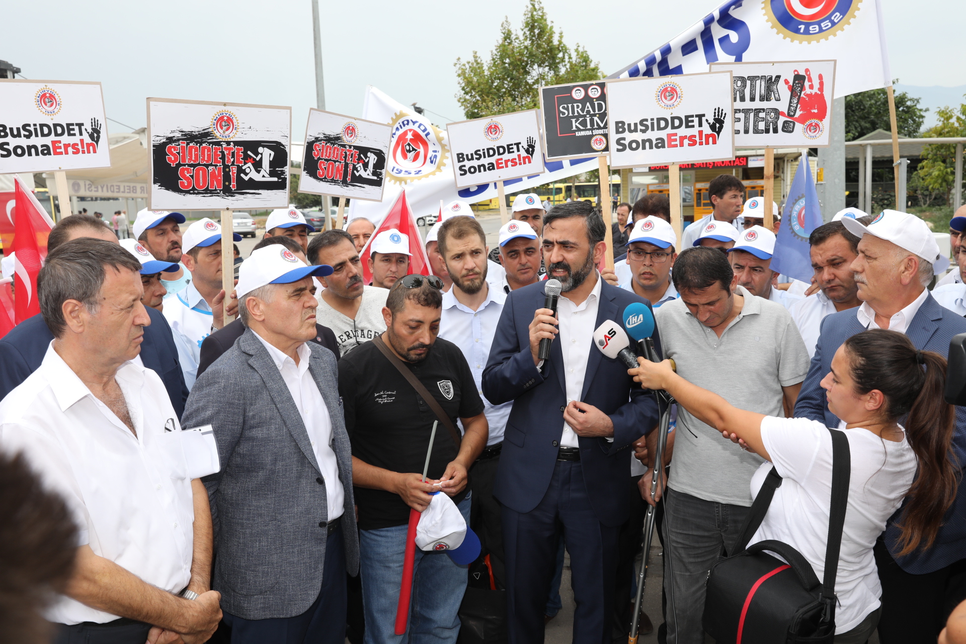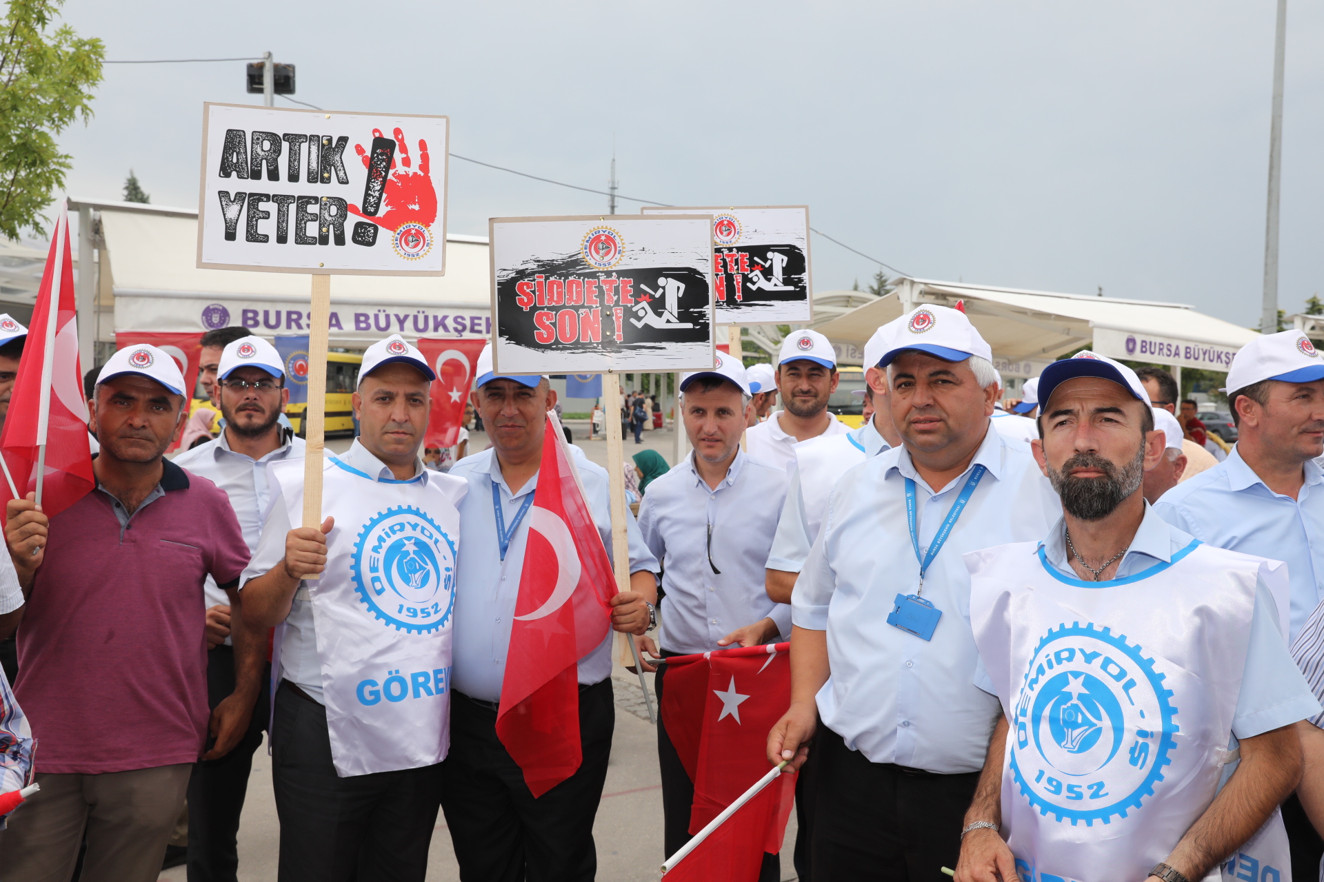 Demiryol-İş Sendikası tarafından, BURULAŞ’a bağlı olarak sahada faaliyet gösteren personele karşı yapılan saldırılar şiddetle kınandı. Bursa Şehirlerarası Otobüs Terminali'nde bir araya gelen sendika üyeleri, 'Şiddete hayır' sloganları atarak, darp edilen meslektaşlarına destek oldu.