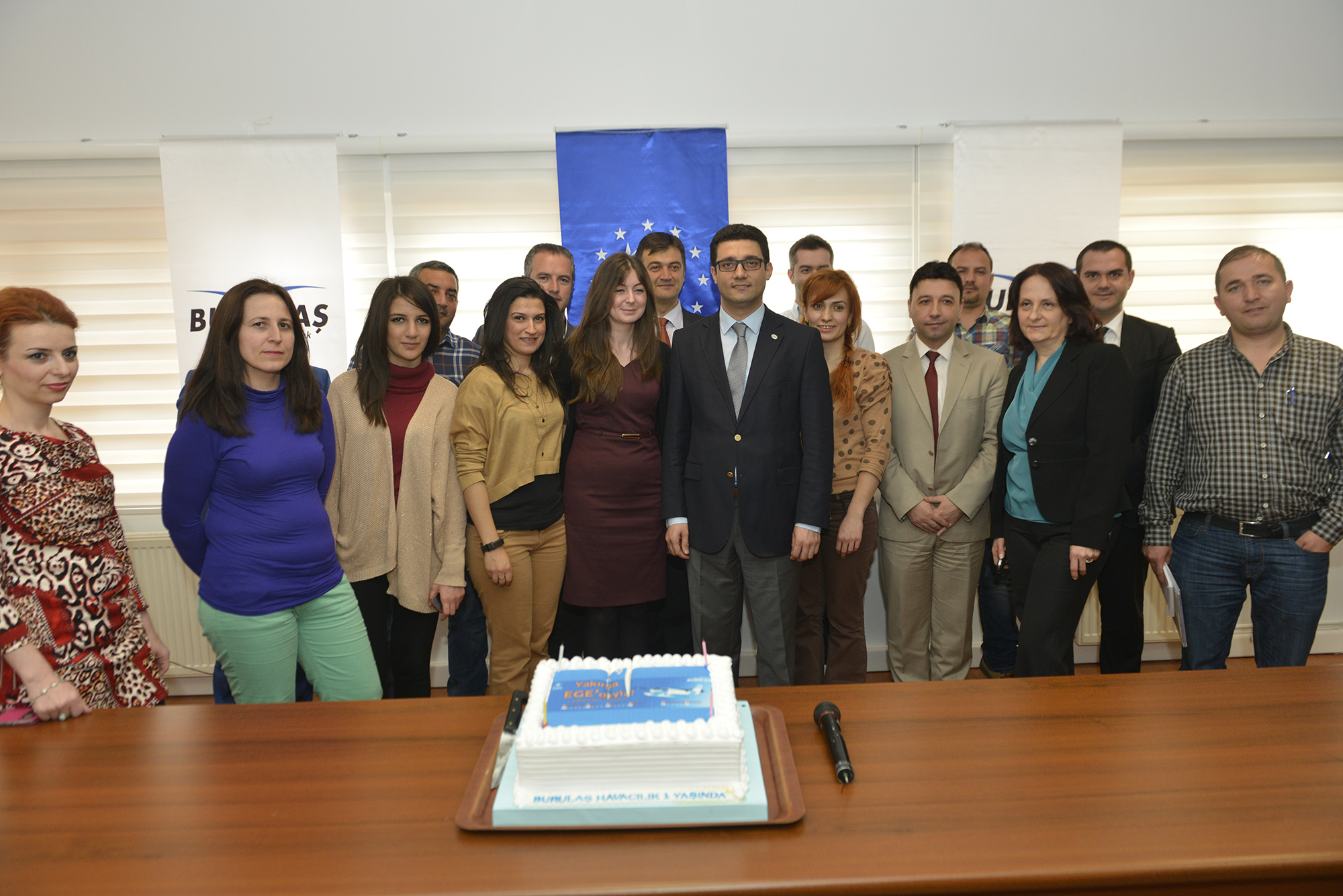 Burulaş Havacılık’ın birinci yaşı yönetim binasında da pasta kesilerek kutlandı. Burulaş Ticari İşletmeler Müdürü Nihat Cenkci ile Pazarlama ve Yolcu İlişkileri Müdürü Nur Köse, Burulaş personelinin de katıldığı kutlama töreninde pasta kesti. Buruyaş Havacılık’ın geride bıraktığı bir yılı değerlendiren Ticari İşletmeler Müdürü Nihat Cenkci, “Bir yıl önce çıktığımız yolda, İstanbul’a en kısa sürede ulaşım alternatifi haline gelen bir marka olduk. Yolcularımızdan gelen talepler doğrultusunda gerek sefer sayıları gerekse yeni güzergahlar üzerinde çalışıyoruz. İstanbul Bursa arası yaptığımız düzenli seferlere bu yıl ek olarak Haliç’ten Bandırma’ya ve Bursa Gemlik’ten İzmir Alaçatı ve Bodrum’a da düzenli seferler ile hizmet götürme yolunda çalışmalarımızı tamamlama aşamasına getirdik” dedi.
