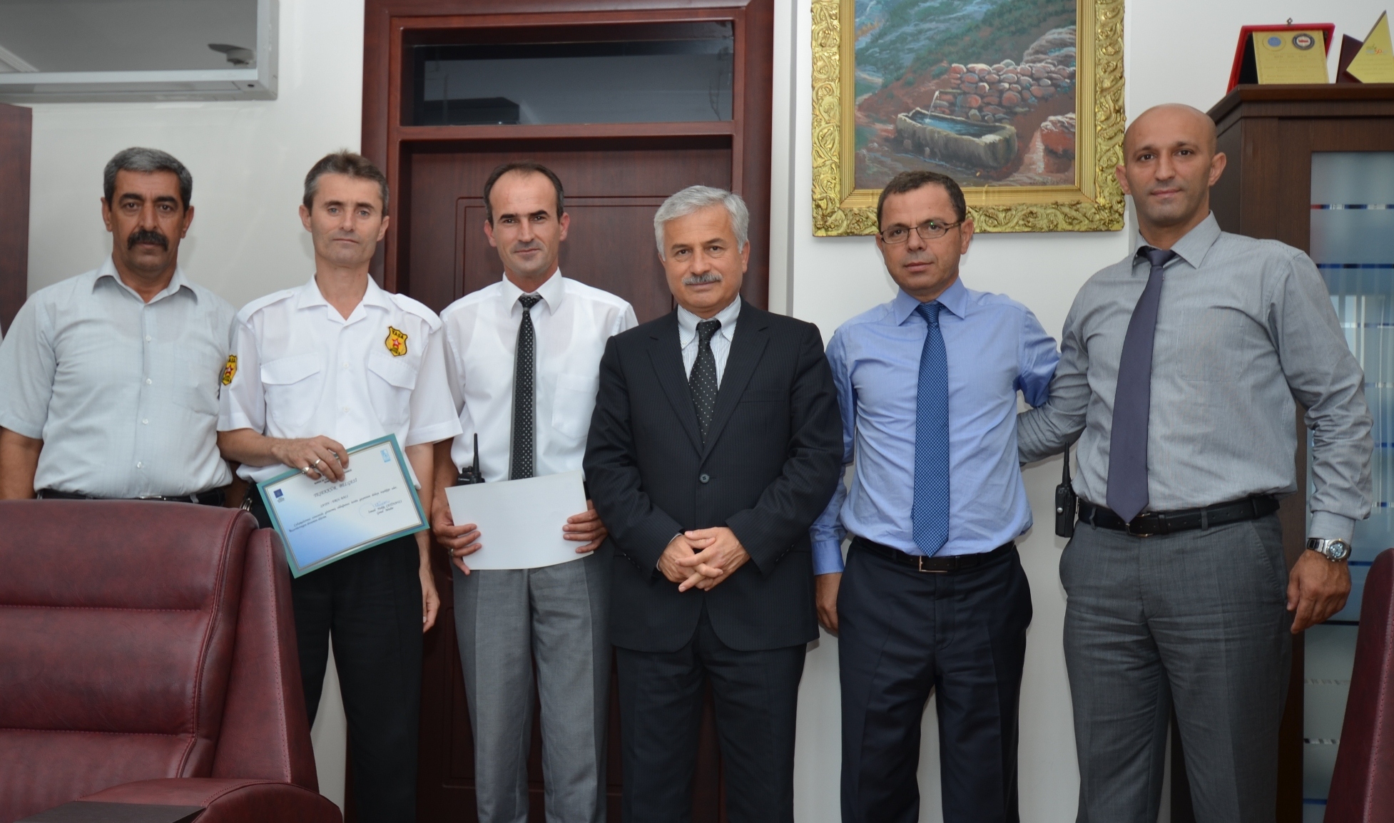 BUSKİ İnsan Kaynakları ve Destek Hizmetleri Dairesi Başkanlığı’na bağlı hizmet veren güvenlik birimleri, geçen ay yapılan denetimlerde Ankara Yolu Hacivat Deresi mevkiinde BUSKİ’ye ait su deposunda meydana gelebilecek kablo hırsızlığını önledi. Serkan Seziş, Nazmi Çetinkaya ve Erol Balı’dan oluşan BUSKİ güvenlik birimi, Hacivat Deresi mevkiindeki su deposunda gerçekleştirdiği rutin gece denetimi ile büyük bir hırsızlık olayının da önüne geçti. Yaptıkları denetimlerde deponun içerisinden gelen gürültüleri fark ederek gerekli güvenlik önlemleriyle iki kişilik hırsızlık şebekesini etkisiz hale getiren BUSKİ güvenlik ekipleri, hırsızları da polise teslim etti. BUSKİ Genel Müdürü İsmail Hakkı Çetinavcı, BUSKİ güvenlik birimi çalışanlarının olaya müdahalesini takdir belgesiyle onurlandırdı. Cesaret örneği gösteren Seziş, Çetinkaya ve Balı’yı tebrik eden Çetinavcı, önemli müdahalenin kamu malının gözetilip korunmasına da örnek olduğunu vurguladı.