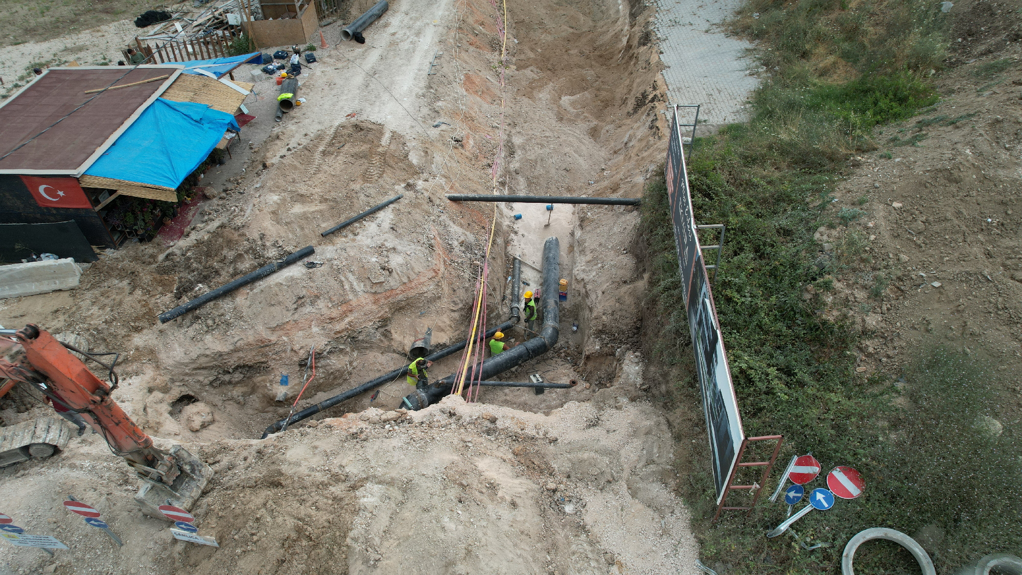 BURSA - Bursa’nın Nilüfer İlçesi’ndeki yol yapımı çalışmaları kapsamında içme suyu hatlarının yer değişikliği nedeniyle BUSKİ’nin gece 02.00’da başlattığı yoğun mesai aralıksız sürüyor. Ekipler su kesintisinin bir an önce sona ermesi için canla başla çalışıyor.