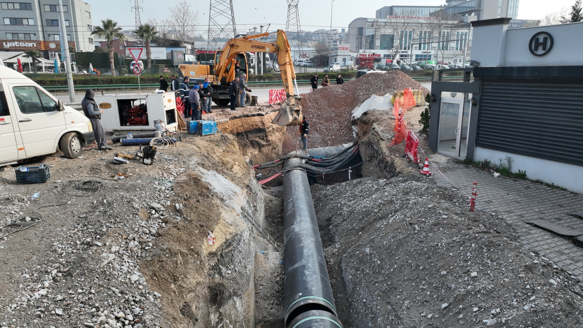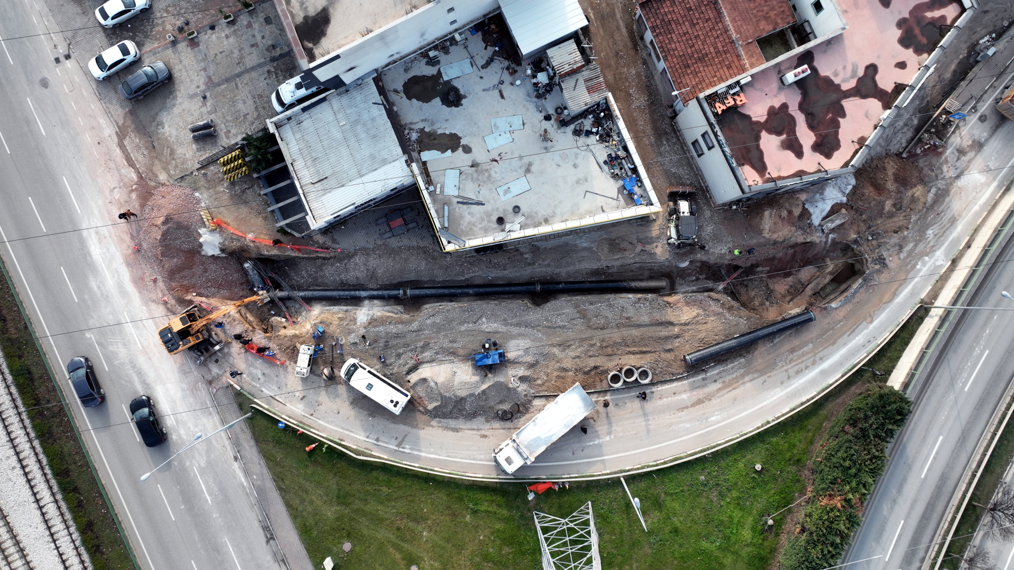 Bursa Büyükşehir Belediyesi’nin ulaşım yatırımları kapsamında yapılacak Mudanya Yolu Filament Kavşağı düzenleme çalışmaları öncesinde, alandaki altyapı hatlarının deplasesi için BUSKİ devreye girdi. Nilüfer İlçesi'nin 9 mahallesi ve Küçük Sanayi Sitesinin tamamında su kesintisine neden olacak çalışma için tüm hazırlıklarını tamamlayan BUSKİ, su kesintisinin uzamaması için 14 Ocak Cumartesi gece yarısı 60 kişilik bir ekiple, çalışmaların startını verdi. Gecenin karanlığında başlayıp, gün boyu aralıksız devam eden hummalı çalışma ile kavşak alanında kalan yaklaşık 300 metrelik hattın yer değişikliği başarılı bir şekilde yapıldı.