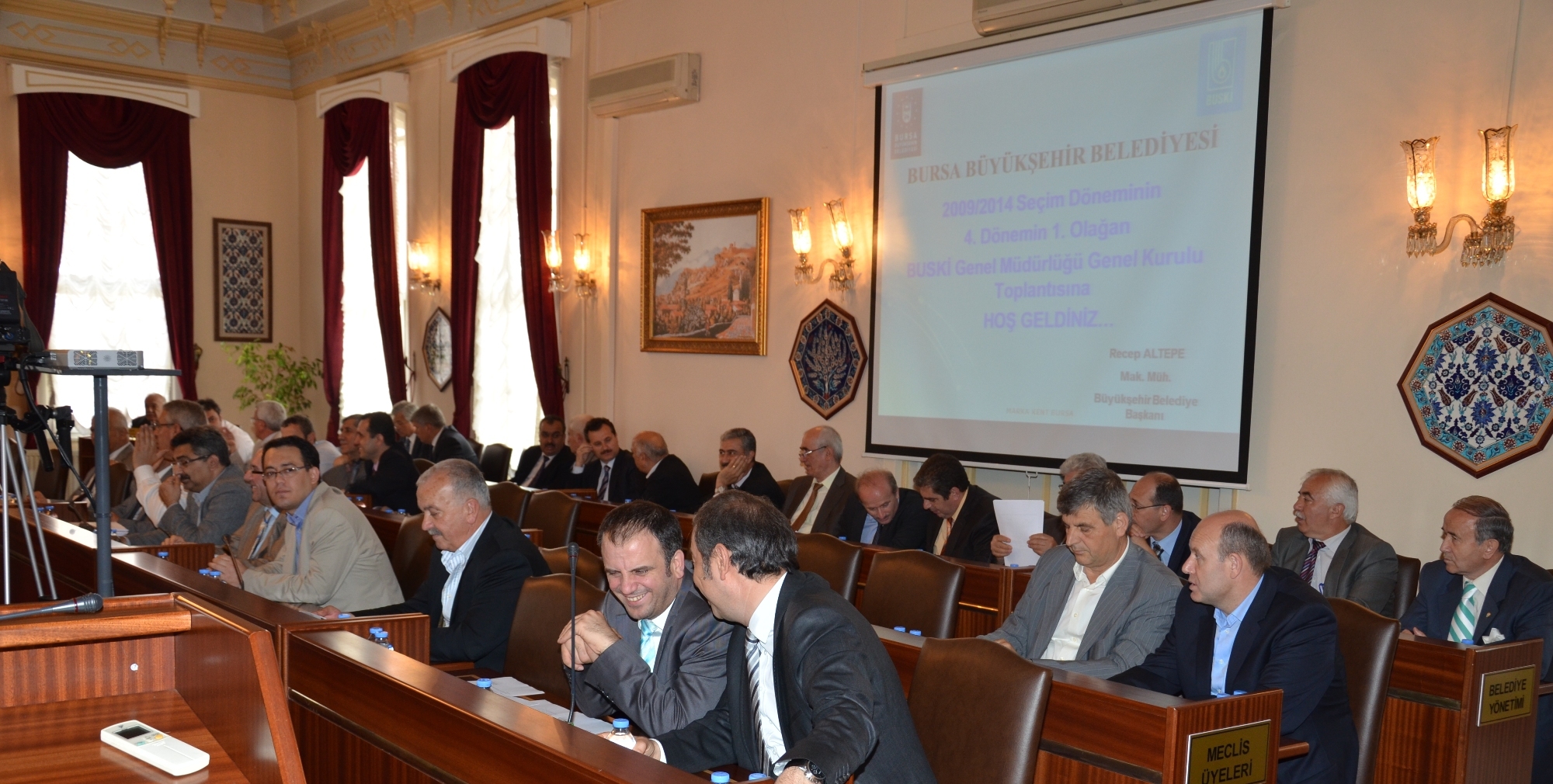 BUSKİ genel kurul toplantısı, Büyükşehir Belediye Başkanı Recep Altepe’nin başkanlığında tarihi belediye binası meclis salonunda gerçekleştirildi. Büyükşehir Belediyesi meclis üyelerinin yanı sıra BUSKİ Genel Müdürü İsmail Hakkı Çetinavcı, Genel Müdür yardımcıları İsmail Yılmaz, Güngör Gülenç ve Talat Özen ile daire başkanları ve BUSKİ üst düzey yöneticilerinin de katıldığı toplantıda, 2011 mali yılına ait faaliyet raporu ile bilanço ve denetçiler raporu görüşüldü.