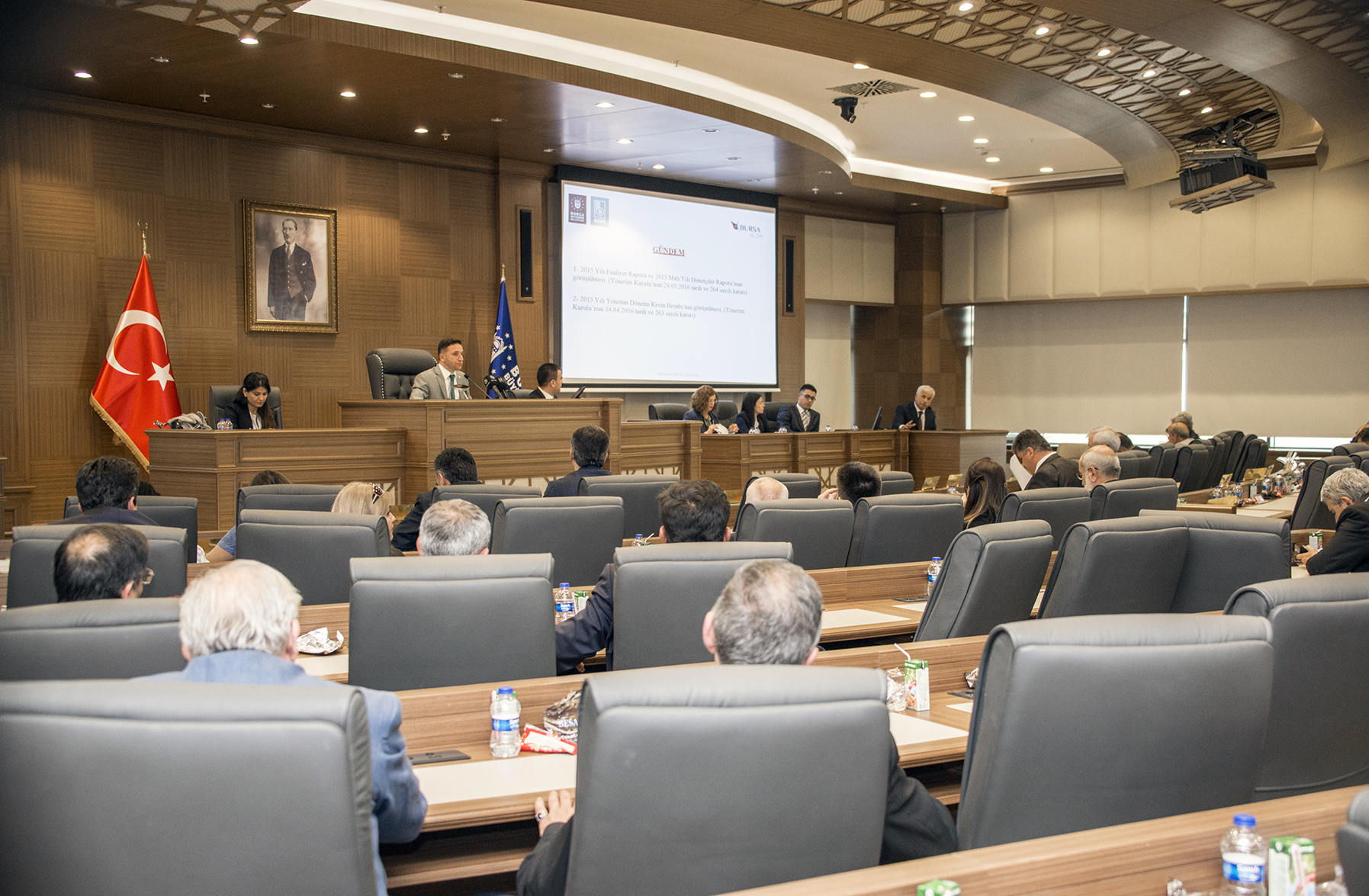 BURSA - BUSKİ Genel Müdürlüğü’nün, Büyükşehir Belediyesi Meclis Salonu’nda, Büyükşehir Belediye Başkan Vekili Atilla Ödünç’ün başkanlığında düzenlenen Genel Kurul Toplantısı’nda, Kurumun 2015 Yılı Faaliyet Raporu ile 2015 Mali Yılı Denetçiler Raporu, meclis üyelerinin oylarıyla kabul edildi.