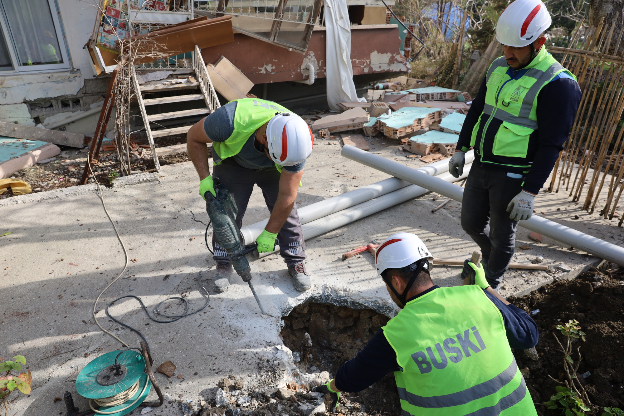 Bursa Büyükşehir Belediyesi, art arda gelen depremlerle enkaz yığınlarına dönen Hatay’da hayatı normale döndürmek için tüm birim ve iştirakleriyle yoğun çalışma sergiliyor. Özellikle kurulacak konteyner kentlerin altyapısının hazırlanması ve seyyar tuvaletlerin kurulumu için büyük gayret gösteren BUSKİ de 16 araç ve 56 personelle yaralara merhem olmaya çalışıyor. Hatay merkezde önceliği ‘Büyükşehir Belediyesi tarafından kurulacak’ konteyner kentlerin altyapısını hazırlamaya veren BUSKİ, toplam 3 bölgede 2 bin konteynerin yer alacağı 110 bin metrekare alanın içme suyu ve kanalizasyon hat bağlantılarını gerçekleştiriyor.