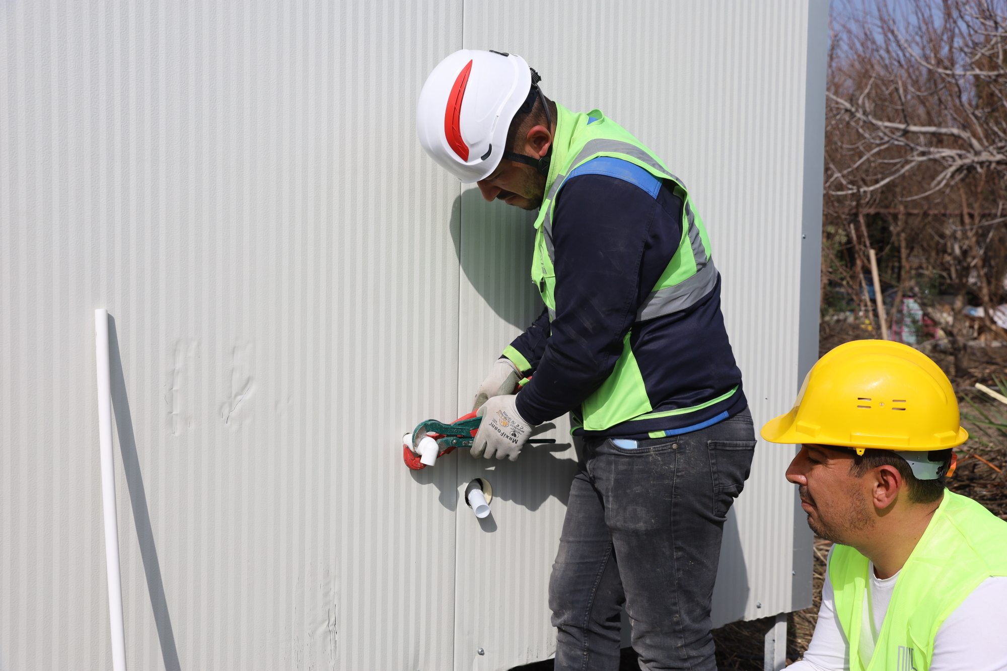 Bunun yanında vatandaşlardan gelen taleplere de yetişmeye çalışan BUSKİ ekipleri, Hatay’ın Defne ilçesi Çekmece Mahallesi’nde kendi imkanlarıyla çadırlar kurarak geçici barınma alanı oluşturan 9 ailenin tuvalet ve duş ihtiyacını gidermek için seferber oldu. Gelen talebe anında dönüş yapan BUSKİ ekipleri, yaklaşık 40 kişinin kullanacağı tuvalet ve duş kabinlerini belirlenen alana yerleştirdi. Kabinlerin altyapı bağlantılarını da hızlıca yapan ekipler, böylelikle önemli bir soruna daha çözüm üretmiş oldu.