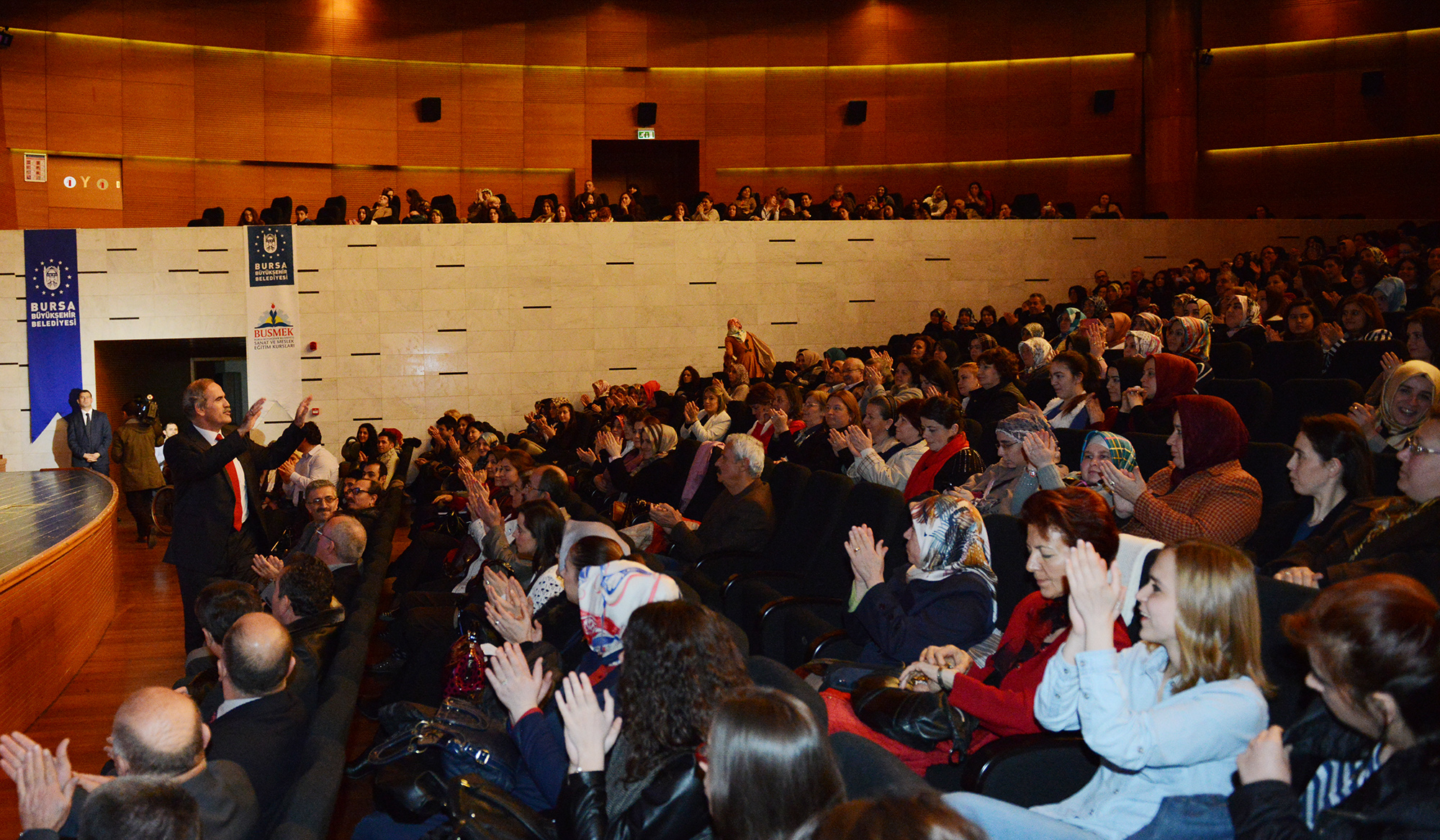 Büyükşehir Belediyesi tarafından vatandaşların el becerilerini geliştirmek, meslek sahibi olmalarını sağlamak ve unutulmaya yüz tutan el sanatlarını yaşatmak amacıyla düzenlenen BUSMEK eğitim kurslarının 2013-2014 yılı birinci dönemi, Atatürk Kongre Kültür Merkezi (Merinos AKKM) Orhangazi Salonu’ndaki törenle sona erdi. Kursiyerler tarafından verilen konserle başlayan törene, Büyükşehir Belediye Başkanı Recep Altepe, belediye yöneticileri ve kursiyerler katıldı.