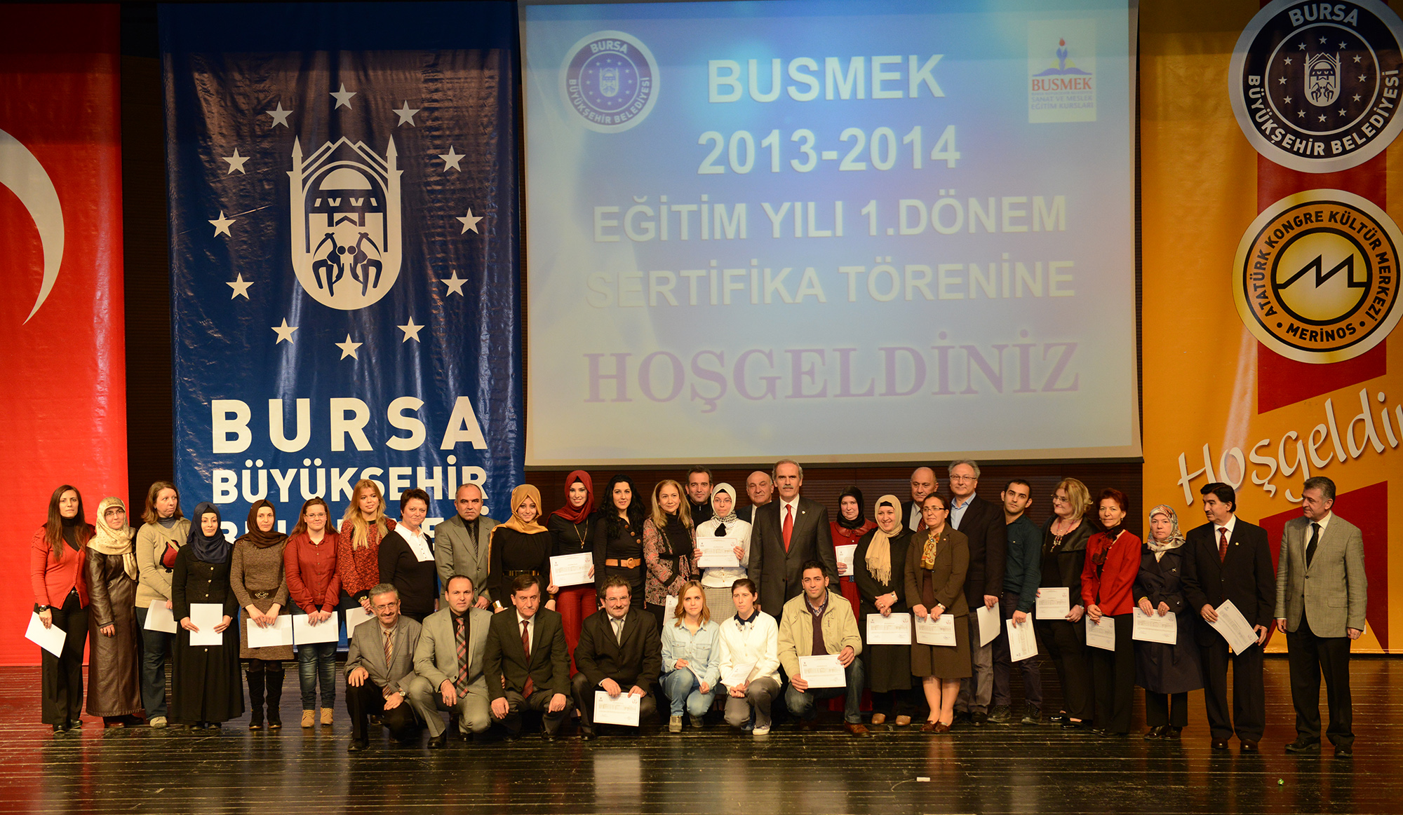 - BURSA BÜYÜKŞEHİR BELEDİYESİ SANAT VE MESLEK EĞİTİMİ KURSLARI’NIN (BUSMEK) 2013-2014 BİRİNCİ EĞİTİM YILI DÖNEMİNİ BAŞARIYLA BİTİREN BİN 70 KURSİYER, SERTİFİKALARINI TÖRENLE ALDI.