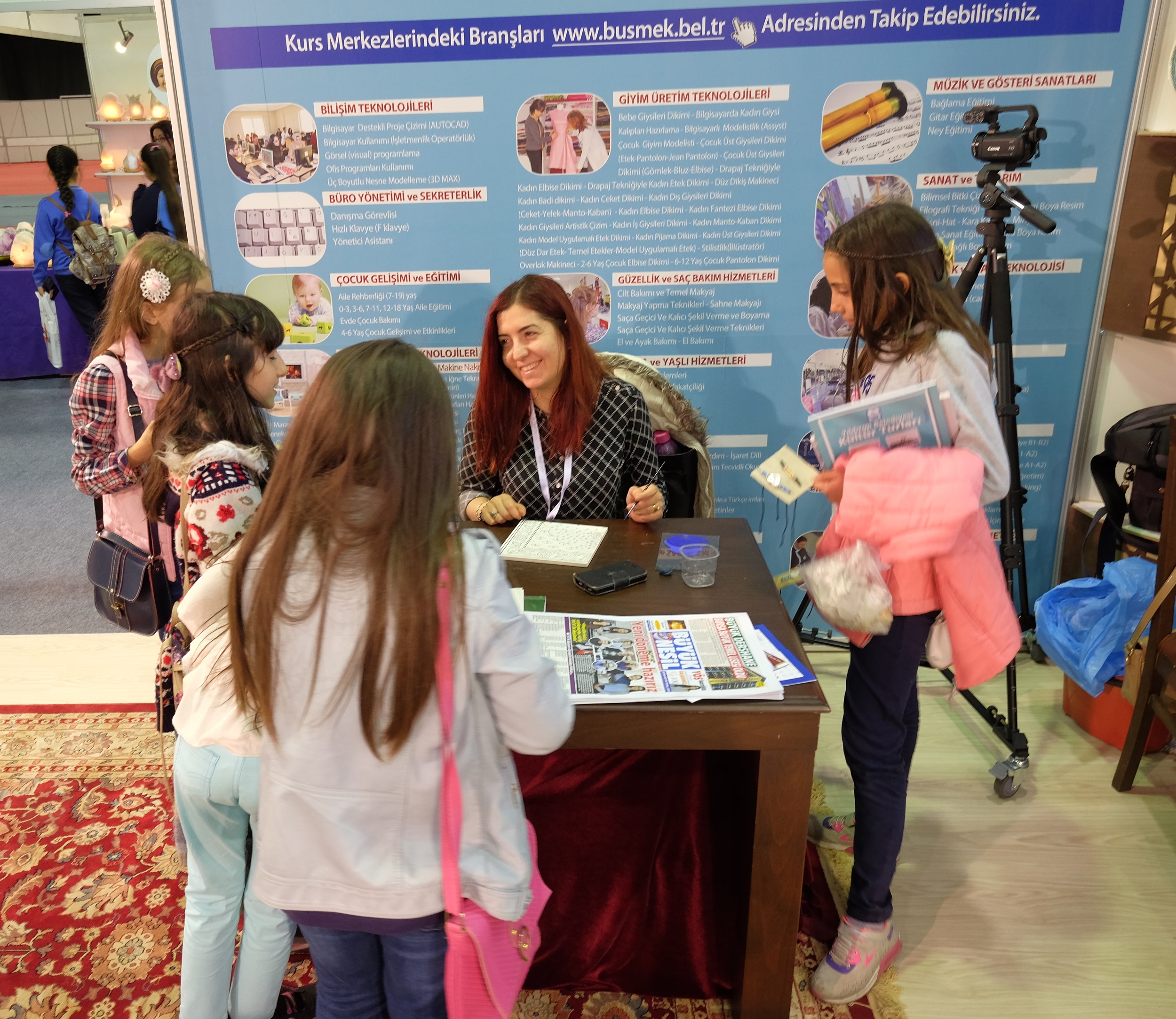 - Fuar boyunca ziyaretçilere eğitimler hakkında bilgi verilirken aynı zamanda geleneksel Türk el sanatlarının da tanıtımı yapılıyor.