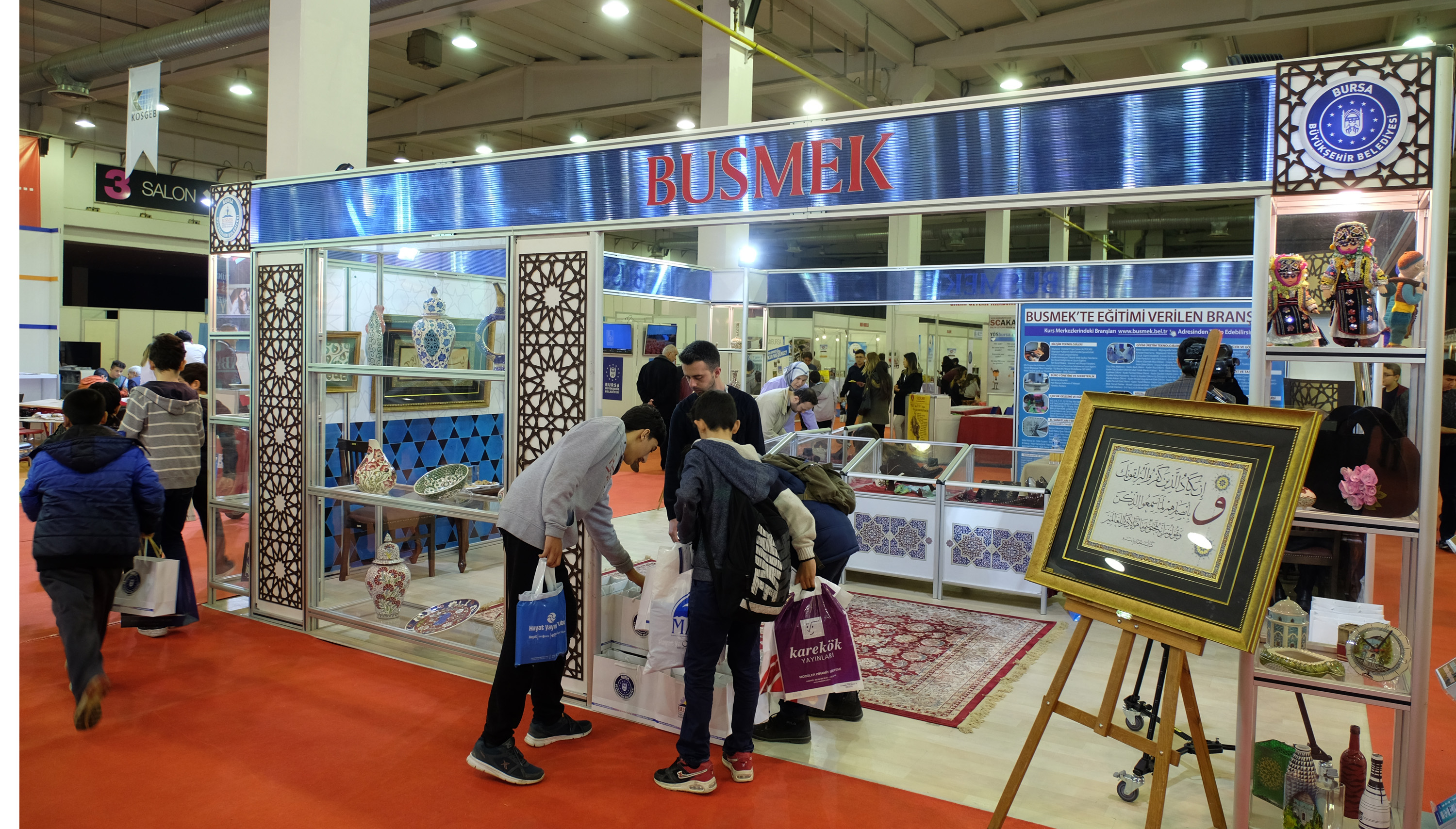 13. Bursa Eğitim Fuarı, Bursa Uluslararası Fuar ve Kongre Merkezi’nde yoğun ilgiyle gerçekleştirildi. Fuara, yurtiçi ve yurt dışından yüze yakın firmanın katılım sağlarken BUSMEK de vatandaşlarla bir araya geldi. Özel tasarımıyla dikkat çeken BUSMEK standında geleneksel el sanatları sergilenirken, BUSMEK öğretmenlerinin katılımıyla her gün farklı bir el sanatının tanıtımı yapıldı. BUSMEK standını Bursa Büyükşehir Belediyesi Sosyal Hizmetler Daire Başkanı Şaban Kander ile Sosyal İşler ve Eğitim Hizmetleri Şube Müdürü İbrahim Karaman da ziyaret etti. Fuar süresince katılımcı firmalar tarafından düzenlenen seminerlerle ziyaretçilere merak ettikleri eğitim ile ilgili bilgiler de verildi. Eğitim fuarı, üniversiteler, meslek yüksekokulları, özel ve kamuya ait eğitim kurumları, anaokulları, dersaneler, dil kursları, danışmanlık firmaları, kırtasiye ve eğitim araç gereç firmaları, sendikalar, vakıflar ve kreşlerden oluşan geniş konseptiyle dikkat çekti.