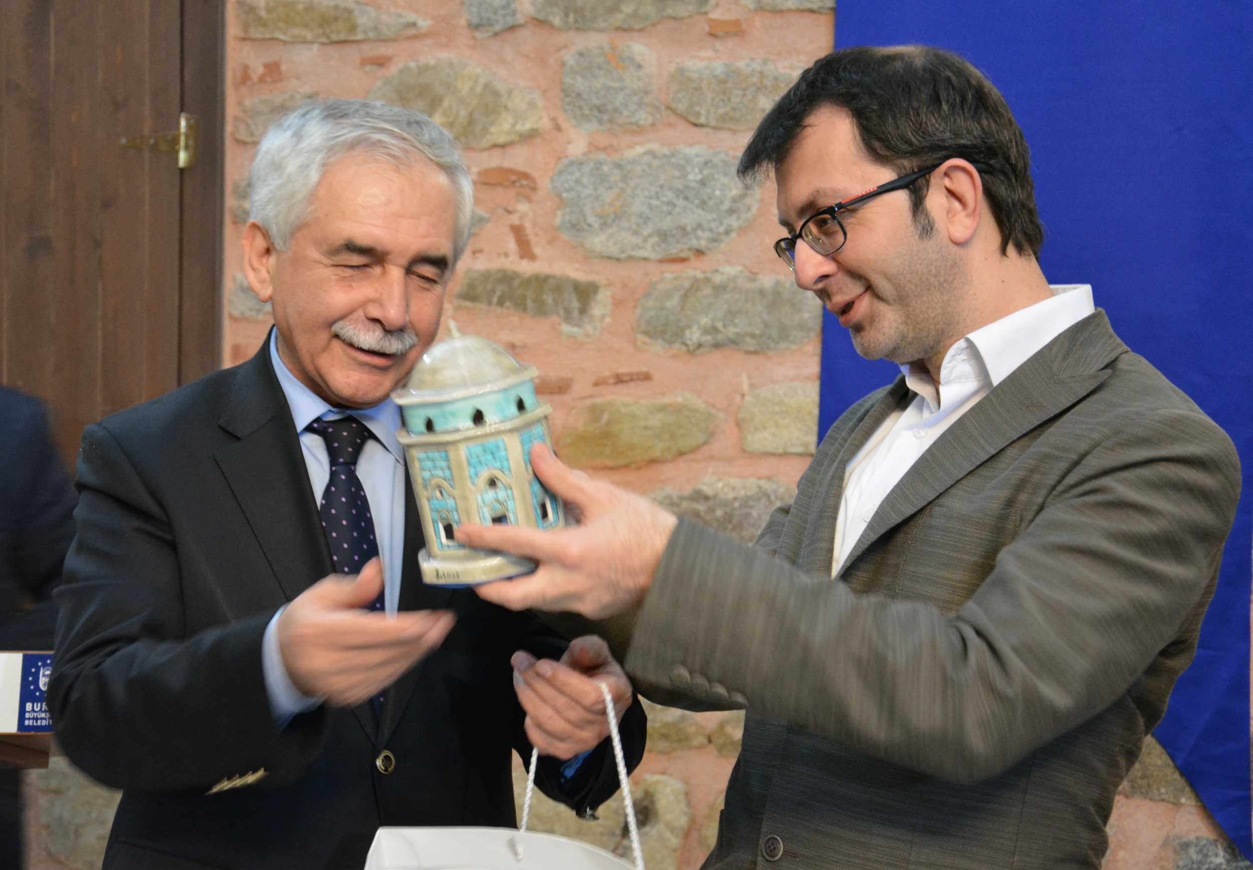 İncirli Kültür Merkezi’nin ‘Kültür Söyleşileri’ de bu kez Turgay Güler’i Bursalılarla buluşturdu. ‘Dünya Yeniden Şekilleniyor’ konulu söyleşiyle takipçileriyle buluşan Güler, yeni yüzyılda ayakta kalmaya çalışan devletlerin yaşadığı sıkıntılardan ve Türkiye’nin değişiminden bahsetti. Programın sonunda ise Bursa Büyükşehir Belediyesi Sosyal İşler Şube Müdürü Şahin Arat ile Muhsin Özlükurt, Güler’e teşekkür ederek, BUSMEK kursiyerleri tarafından el işçiliğiyle üretilen ‘Yeşil Türbe’ çinisini hediye etti.