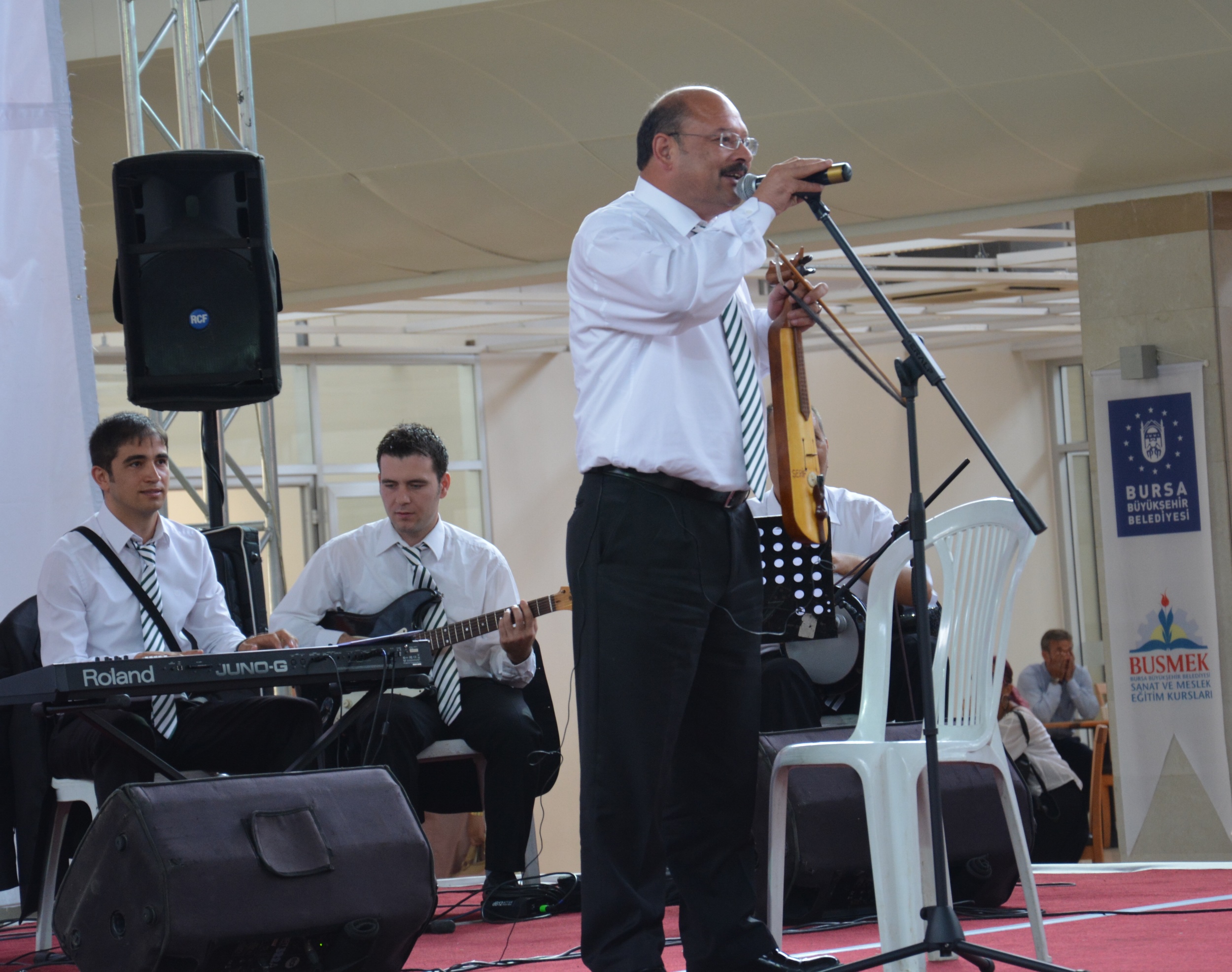Kursiyerlerin el emeği göz nuru eserleri Atatürk Kongre Kültür Merkezi (Merinos AKKM) fuaye alanında düzenlenen programla 3 ayrı sanat galerisinde sanatseverlerin beğenisine sunuldu. Mehter Takımı ve Büyükşehir Belediyesi Bandosu’nun konseriyle başlayan serginin açılış törenine kursiyerler yoğun ilgi gösterdi.