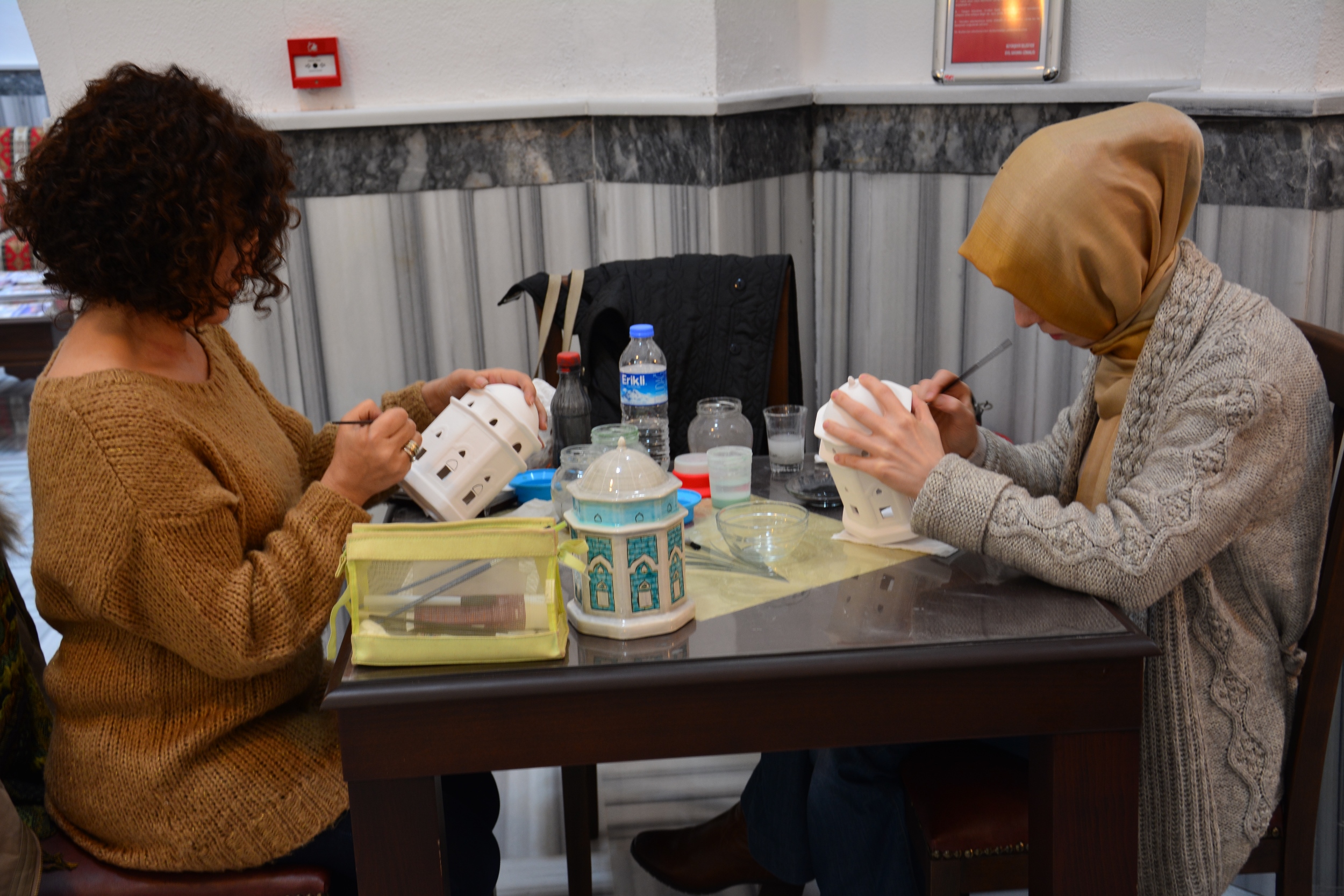 Tecrübeli kursiyerlerden Fevziye Yılmaz (60) BUSMEK serüvenini anlatarak, “BUSMEK’te 3 yıl yağlıboya, 1 yıl ebru, 1 yıl ev tekstili ve 2 yıl çini eğitimi aldım, halen de minyatür kurslarına geliyorum ve çini ihtisas grubuna devam ediyorum. 7 yıldır hemen hemen tüm kurslara katıldım” dedi.