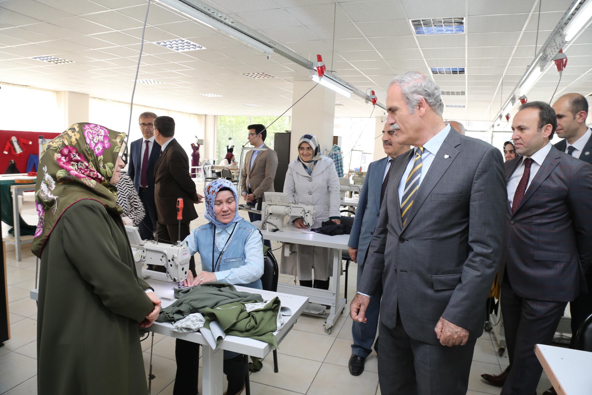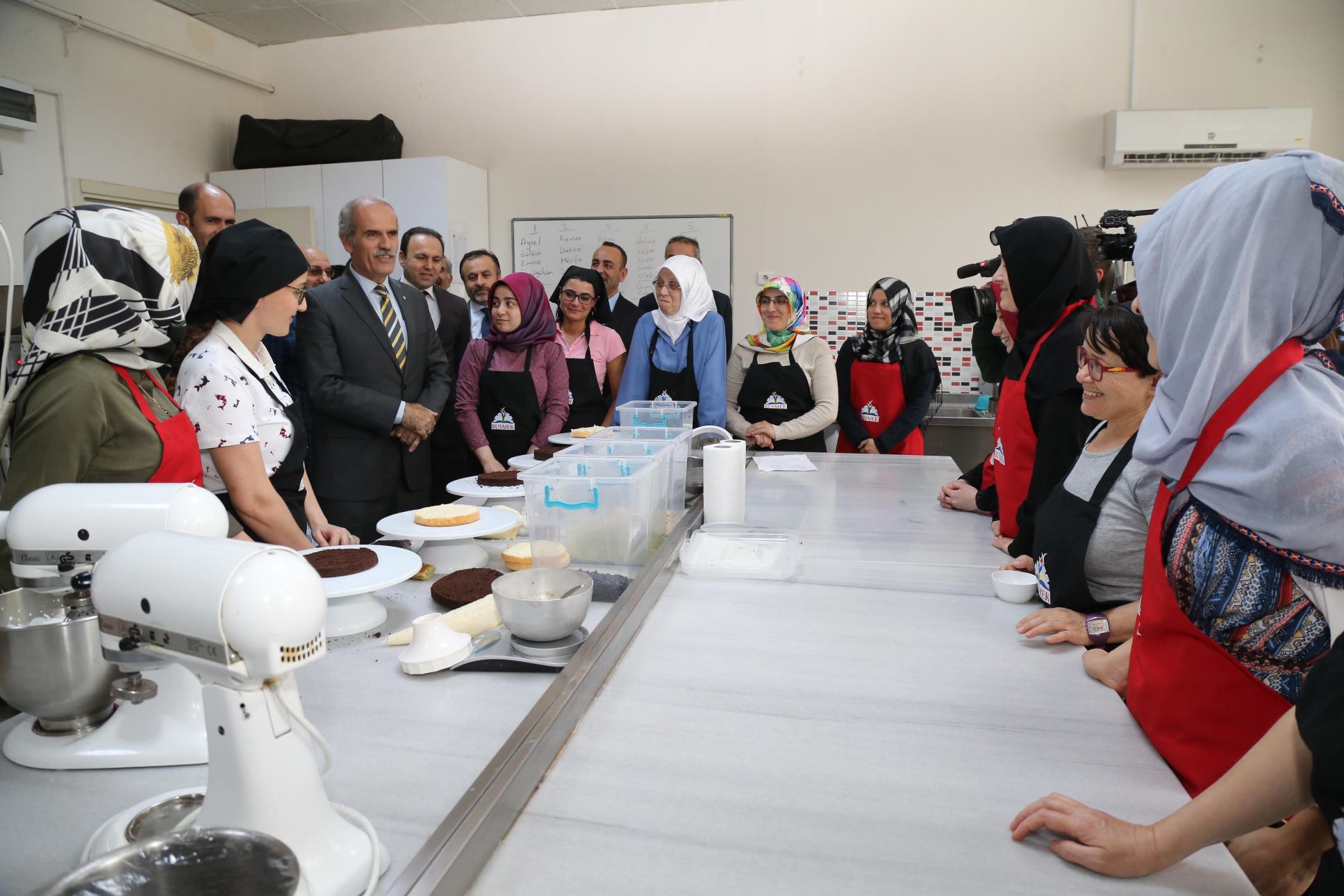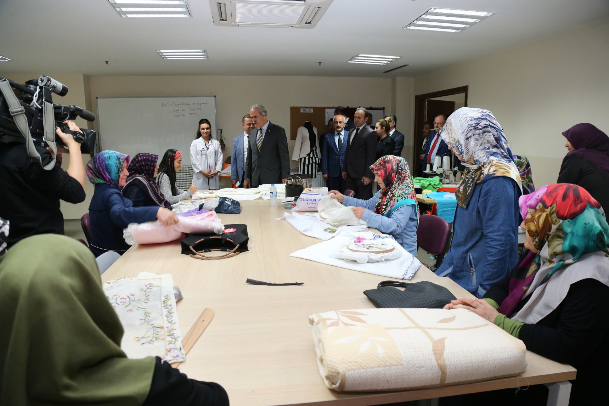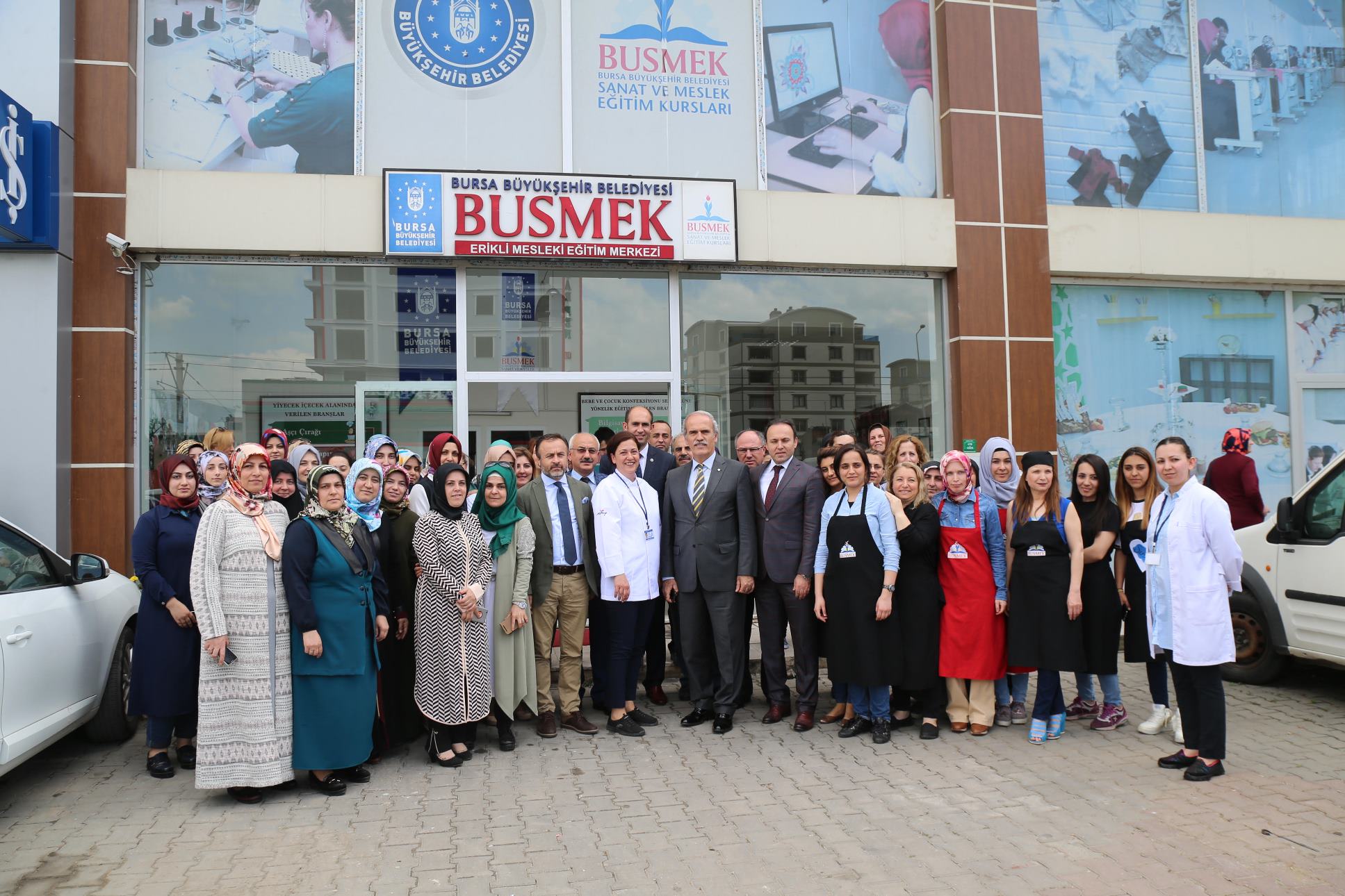 Bursa’da 10 yılı aşkın süredir ‘hayat boyu eğitim’ anlayışıyla pek çok alanda ücretsiz sanat ve meslek eğitimleri veren Bursa Büyükşehir Belediyesi Sanat ve Meslek Eğitim Kursları (BUSMEK), her kesimden ve her yaştan vatandaşın eğitim ihtiyacına cevap veriyor. Büyükşehir Belediye Başkanı Recep Altepe, yapılan çalışmaları görmek üzere BUSMEK’e bağlı Erikli Mesleki Eğitim Merkezi, Hanımlar Lokali ve Sosyal Yaşam Merkezi’ni ziyaret etti. Sosyal Hizmetler Daire Başkanı Şaban Kander ve BUSMEK yöneticilerinin de hazır bulunduğu ziyaretlerde Başkan Altepe, atölyeleri gezerek eğitimler hakkında yetkililerden bilgiler aldı.