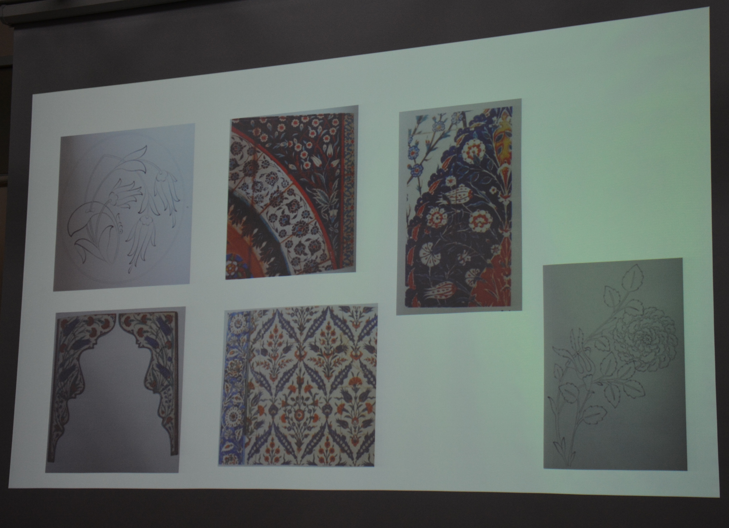 Prof Dr. Ayşe Üstün, ‘Klasik Sanatlarda Desen ve Motifler’ konulu bir söyleşiyle sanatseverlerle buluştu. Hat ve tezhip kursiyerlerinin yoğun katılım gösterdiği söyleşide Üstün, yıllarını verdiği meslek hakkında tüyolar verdi. Sakarya Üniversitesi Güzel Sanatlar Fakültesi Öğretim Üyesi olan Prof. Dr. Ayşe Üstün, konuşmasında tarihten bu yana uygulanan süsleme çalışmalarını ayrıntılı bir şekilde anlattı. Bezeme sanatını alaylı olarak öğrendiğini belirten Üstün, “Desen çizmeye hobi olarak başladım. Sonra mesleğim haline geldi. Bu işleri yaparken kendi başınıza öğreniyorsunuz ama iyi bilen bir üstatla çalışmanız şart. Sabırlı olmak gerek, ben tam 10 yıl çizim yaptım. Hocama artık boyamaya geçeyim diye teklif bile etmedim. Şimdiki öğrenciler çok hevesli çabuk üretim yapmak, hemen sergi açmak istiyorlar” dedi.