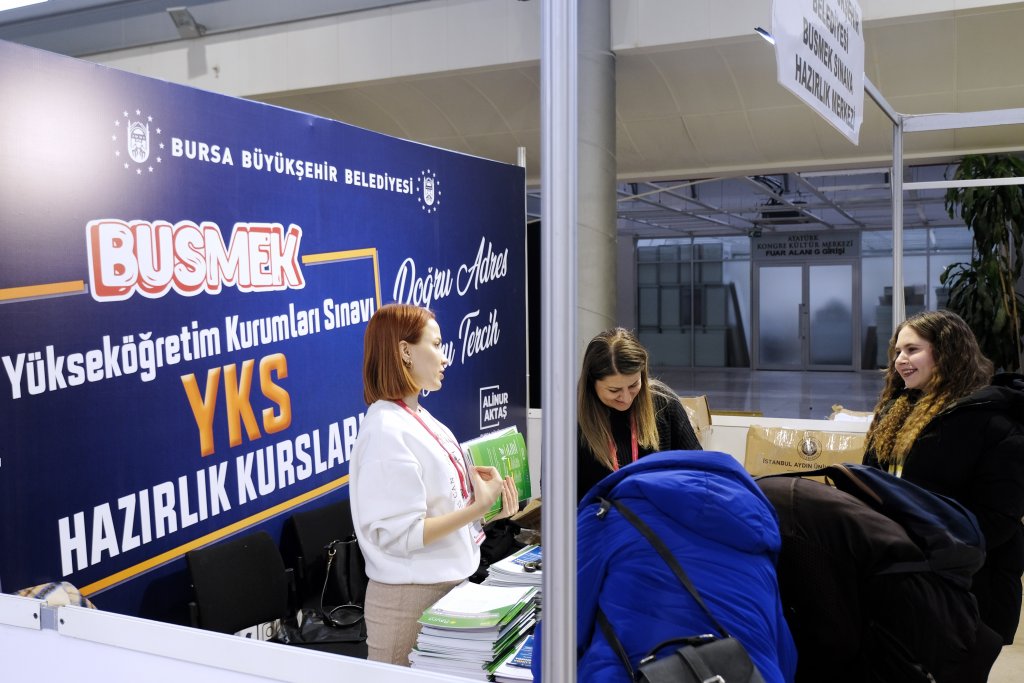 Üniversite hayalleri kuran lise son sınıf öğrencilerinin 2 gün boyunca katılım gösterdiği etkinlikte, BUSMEK de yer aldı. Ücretsiz YKS hazırlık kurslarının tanıtımı yanında, standı ziyaret eden öğrencilere ücretsiz AYT-TYT deneme kitapçıkları hediye edildi. Gençlerin yoğun talep gösterdiği fuarda, ‘kaliteli eğitimlerin yanı sıra’ hazırlık sürecinde kullanılan kaynak kitaplar, soru bankaları ve deneme sınavlarının da ücretsiz sunulduğu BUSMEK kursları, büyük ilgi gördü.