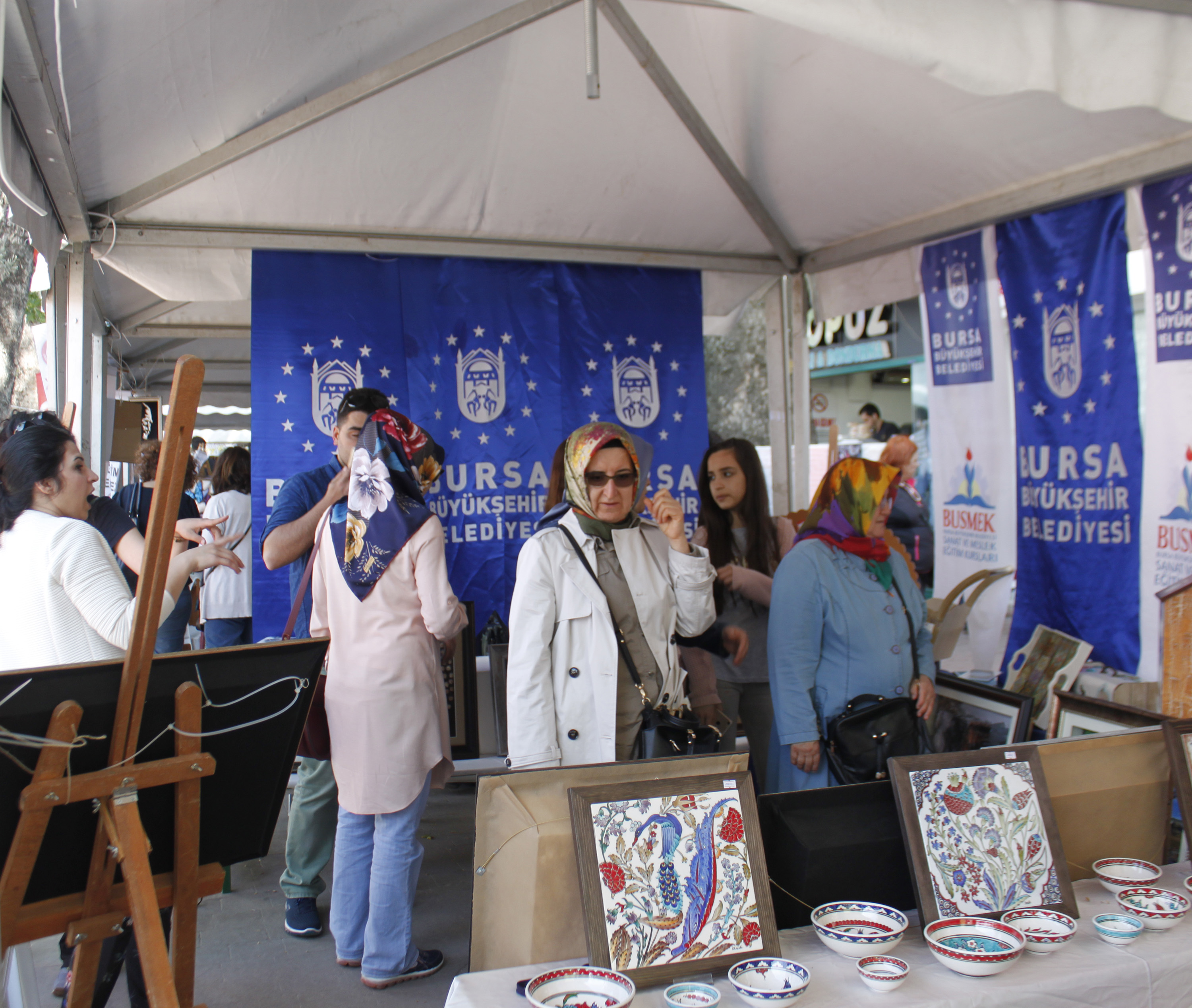 Bursa’ya her alanda değer katmaya devam eden BUSMEK, bu yıl 20.’si gerçekleştirilen ‘Geleneksel Huzurevi Kermesi ve Yiyecek Şenliği’ne 2 farklı noktada açılan stantlarıyla destek oldu. Erikli Mesleki Eğitim Merkezi Yiyecek ve İçecek Hizmetleri alanında eğitim alan kursiyerlerin hazırladığı lezzetler kermeste satışa sunulurken, diğer stantta ise huzurevine bağış amacı ile kurs merkezlerinde üretilen ürünler sergilendi. Yoğun bir tempoda üretim faaliyetlerini sürdüren BUSMEK, ‘İznik Çini Festivali’nde de ilgi odağı oldu. Bursa Büyükşehir Belediyesi, İznik Kaymakamlığı ve İznik Belediyesi ortaklığıyla bu yıl 3. kez düzenlenen ‘İznik Kültür Sanat Çini Festivali’nde BUSMEK İznik Kurs Merkezi kursiyerlerinin el emeği göz nuru eserleri büyük beğeni topladı.
