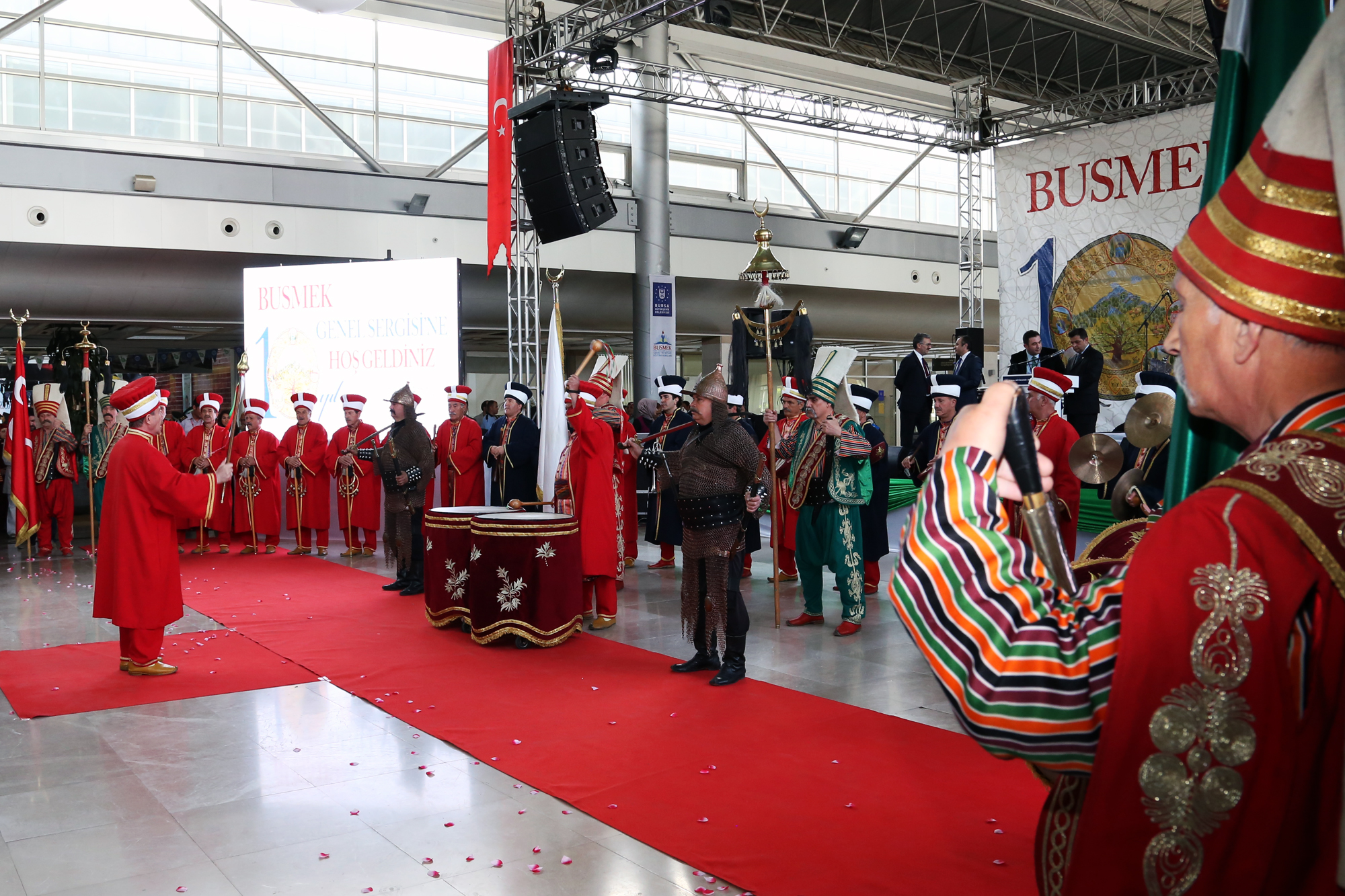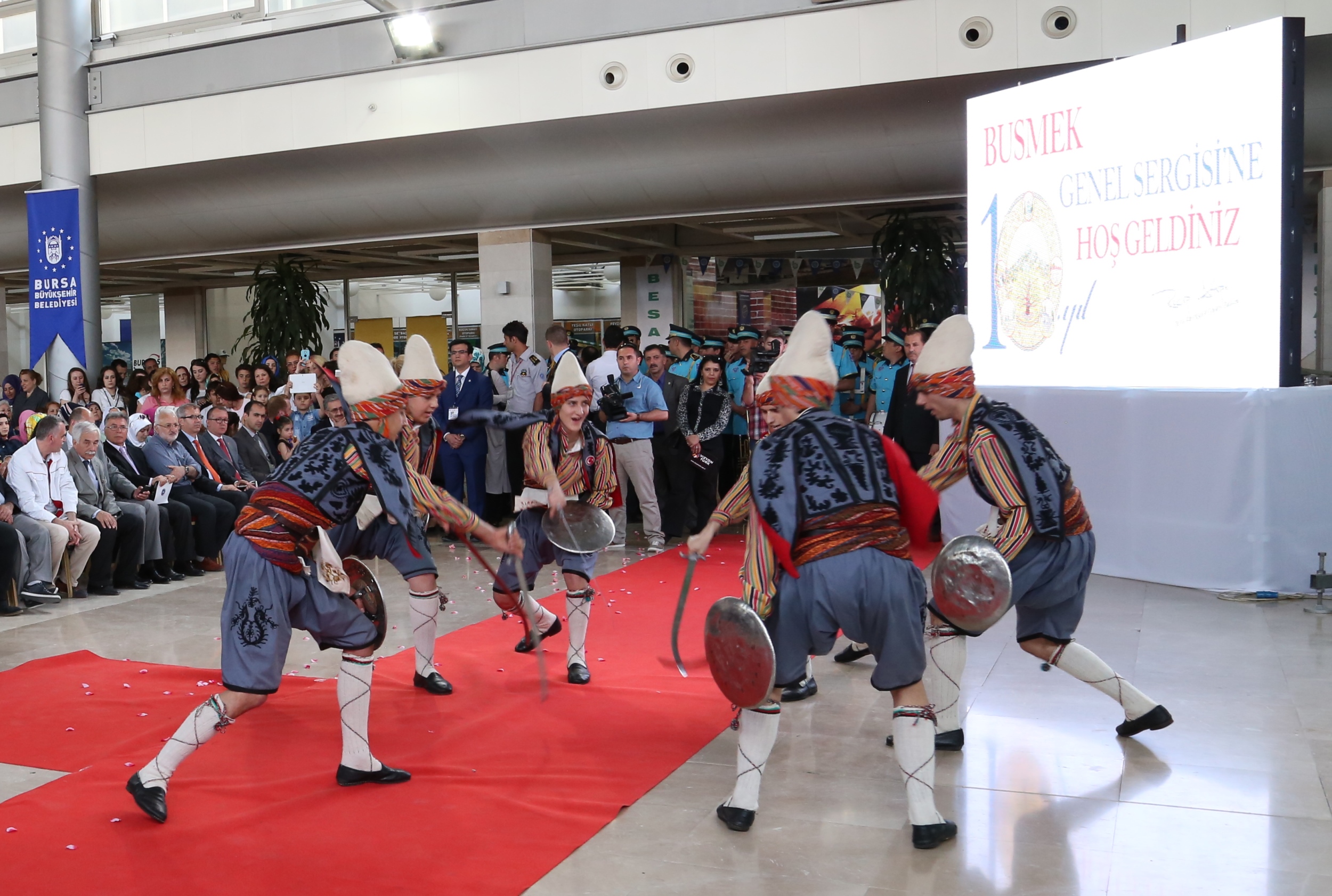 Kursiyerlerin özel eserleri Atatürk Kongre Kültür Merkezi (Merinos AKKM) fuaye alanında düzenlenen programla izlenime açıldı. Mehter Takımı ve Büyükşehir Belediyesi Bandosu’nun konseriyle başlayan serginin açılış törenine halk oyunları gösterileri de renk kattı.
