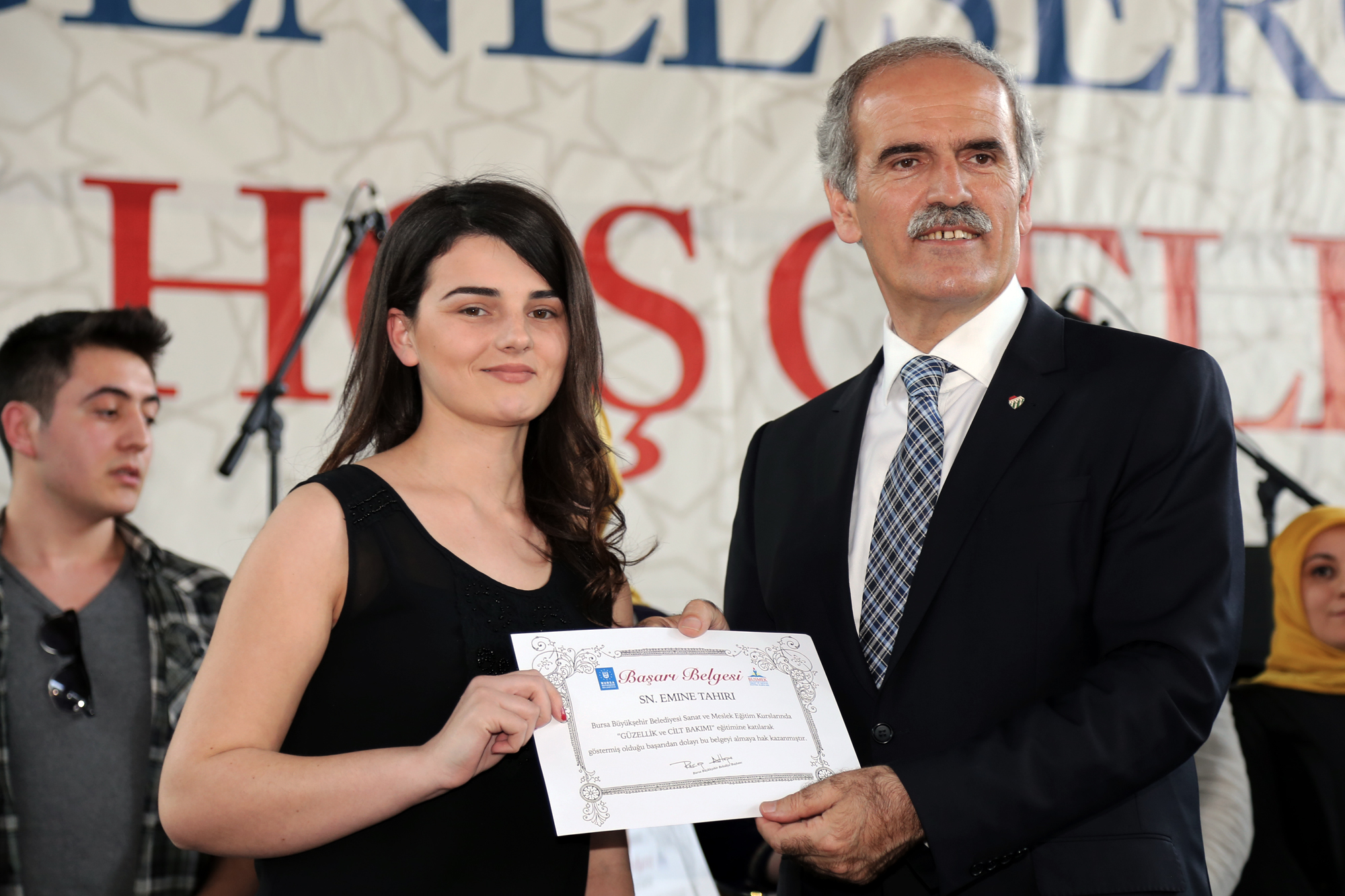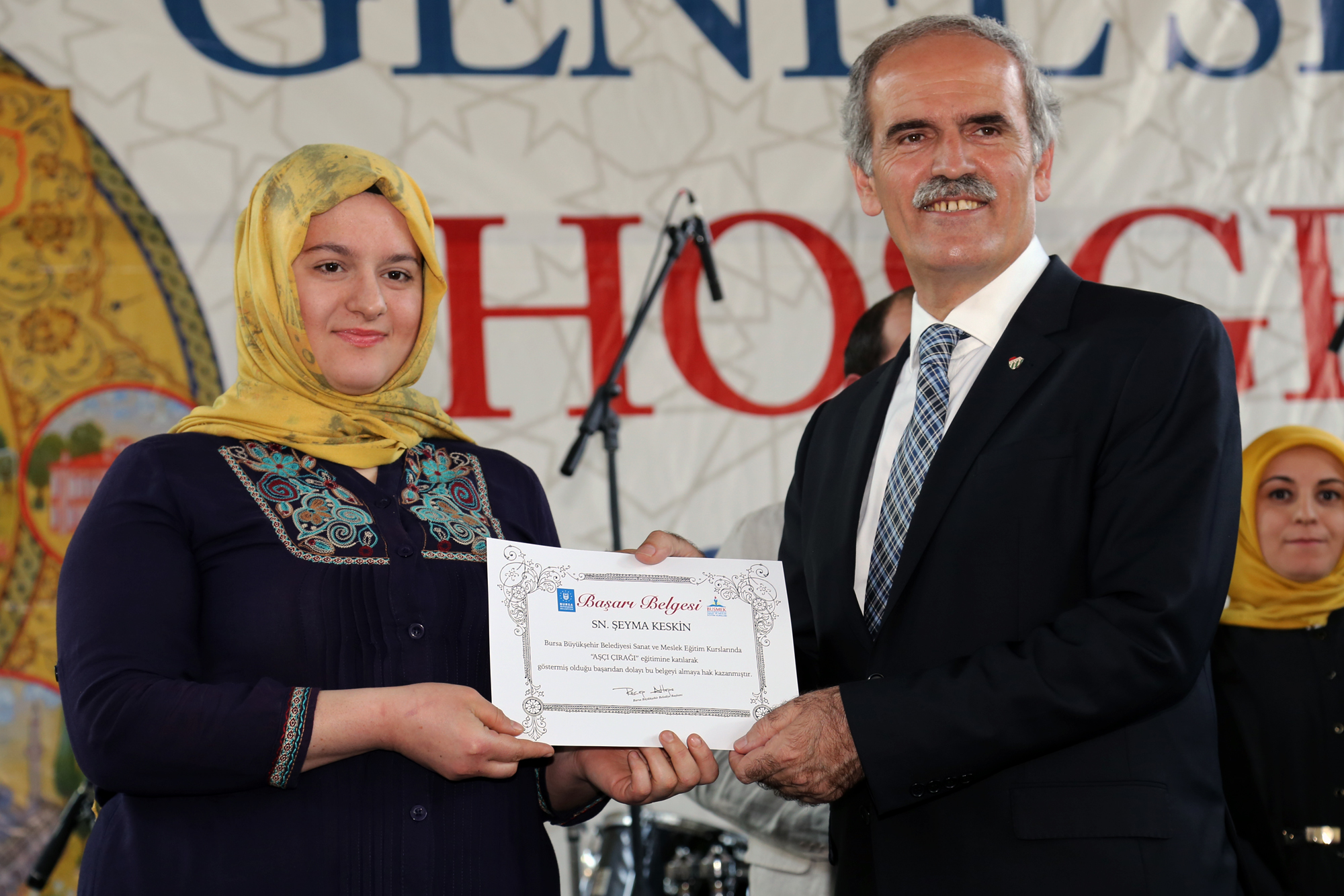 Konuşmaların ardından Başkan Altepe, BUSMEK’te eğitim alarak, kazandıkları bilgi ve deneyimi iş yaşamına aktaran ve kariyer yapan kursiyerlere sertifikalarını verdi.