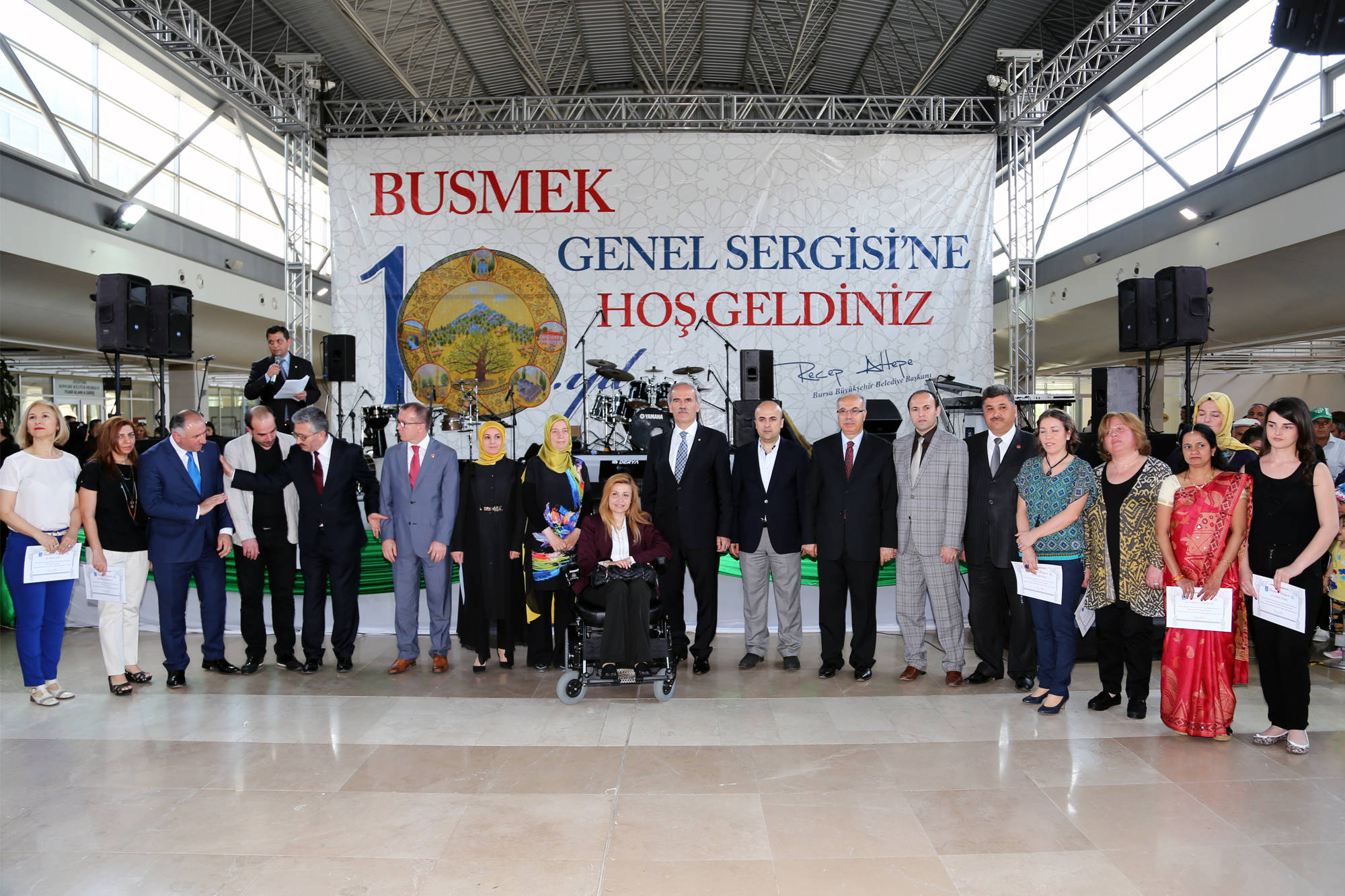 Türk Pop Müziği’nin güçlü sesi Yusuf Güney’in konseriyle renklenen programda, BUSMEK kursiyerlerinin el emeği göz nuruyla hazırladıkları sergi izlenime sunuldu. Başkan Altepe, protokol üyeleriyle birlikte serginin açılış kurdelesini kestikten sonra eserleri tek tek inceledi. Törene ilçelerin belediye başkanları, milletvekili adayları, Büyükşehir Belediyesi bürokratları, kursiyerler ve aileleri de katıldı.