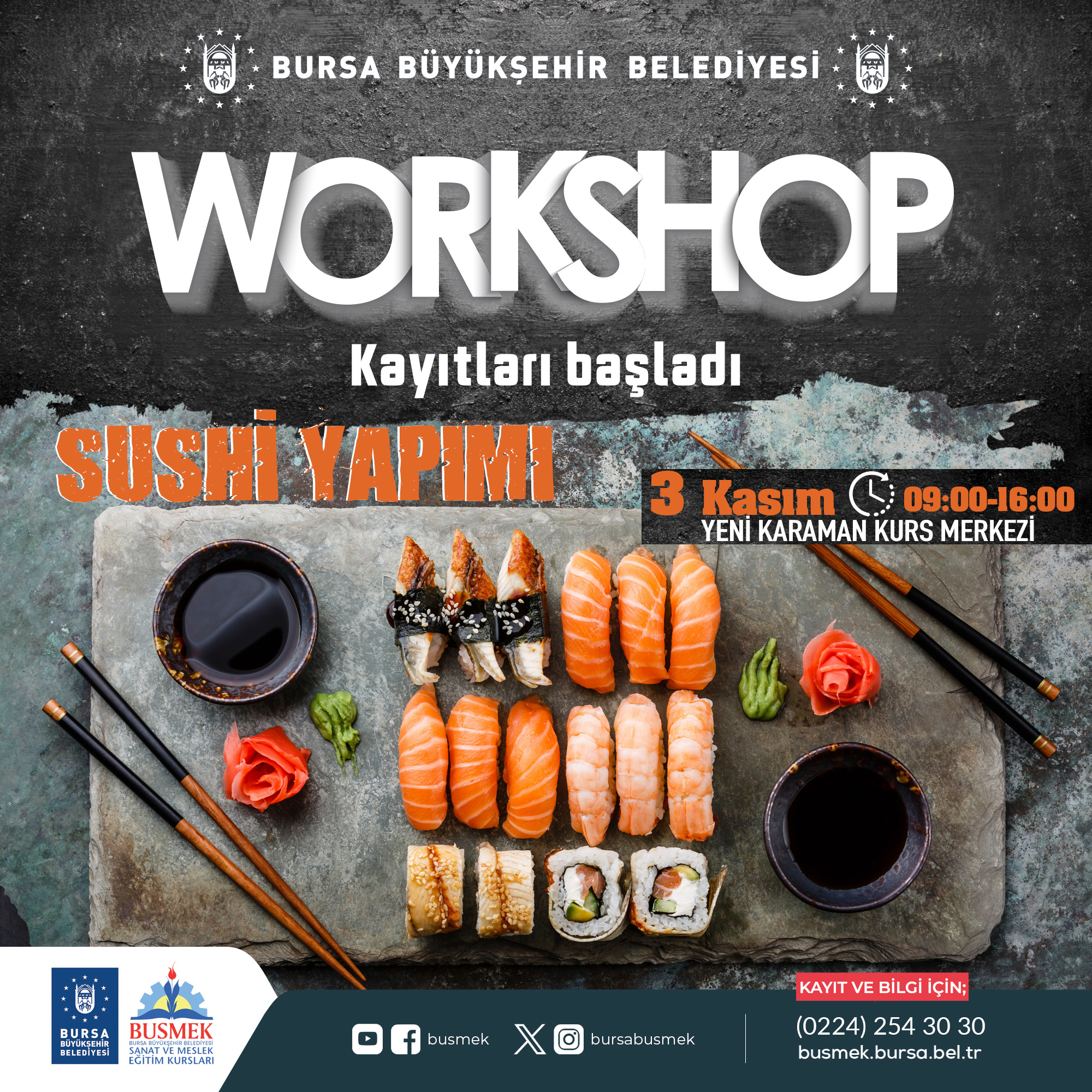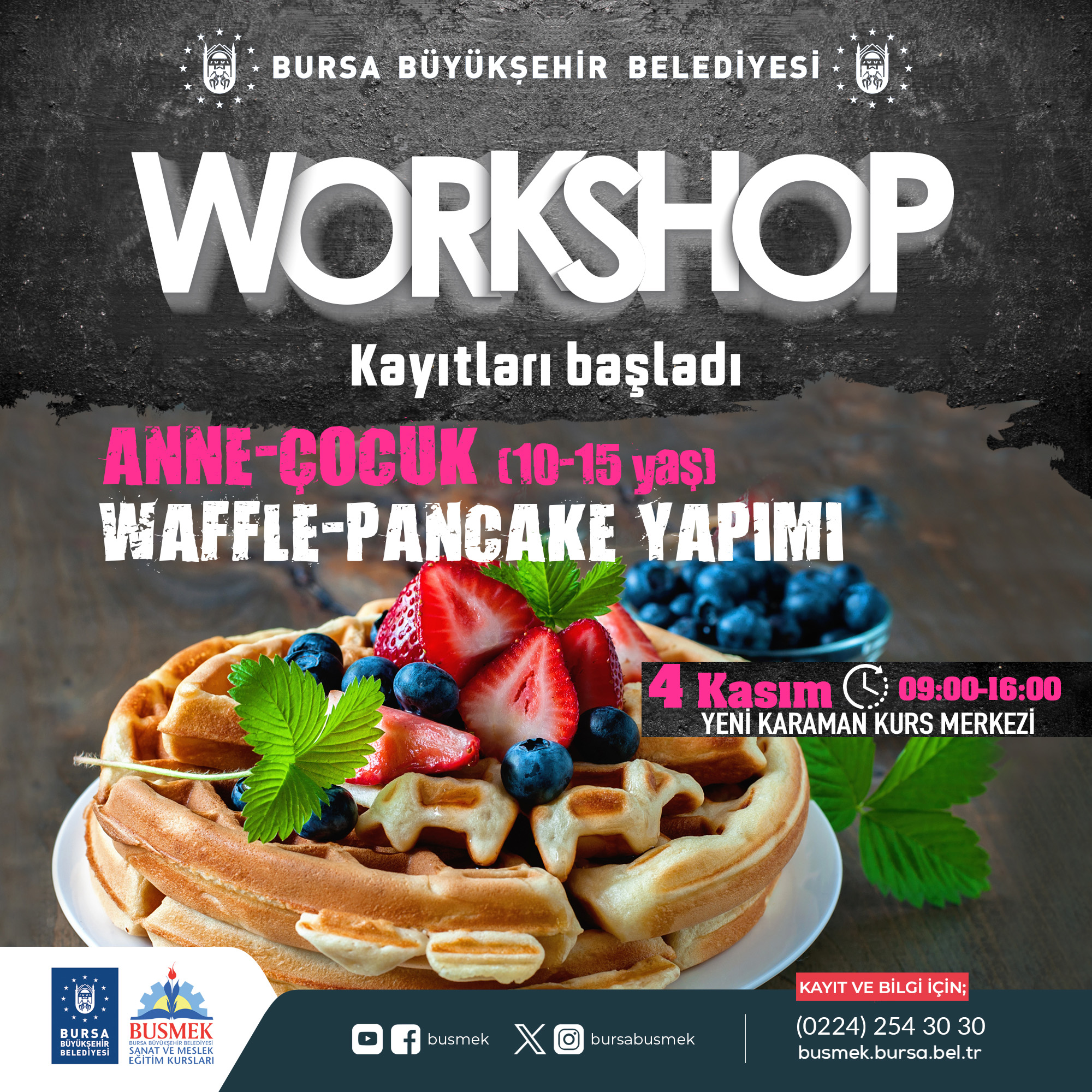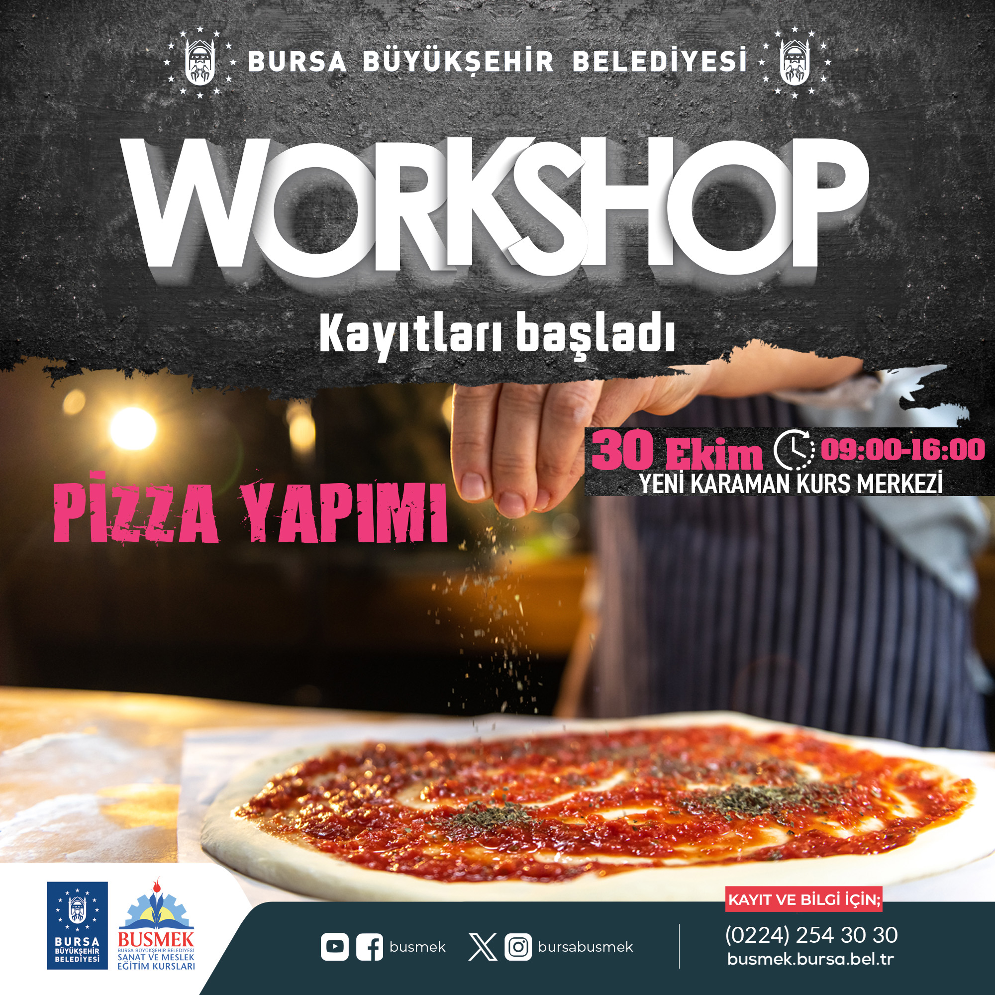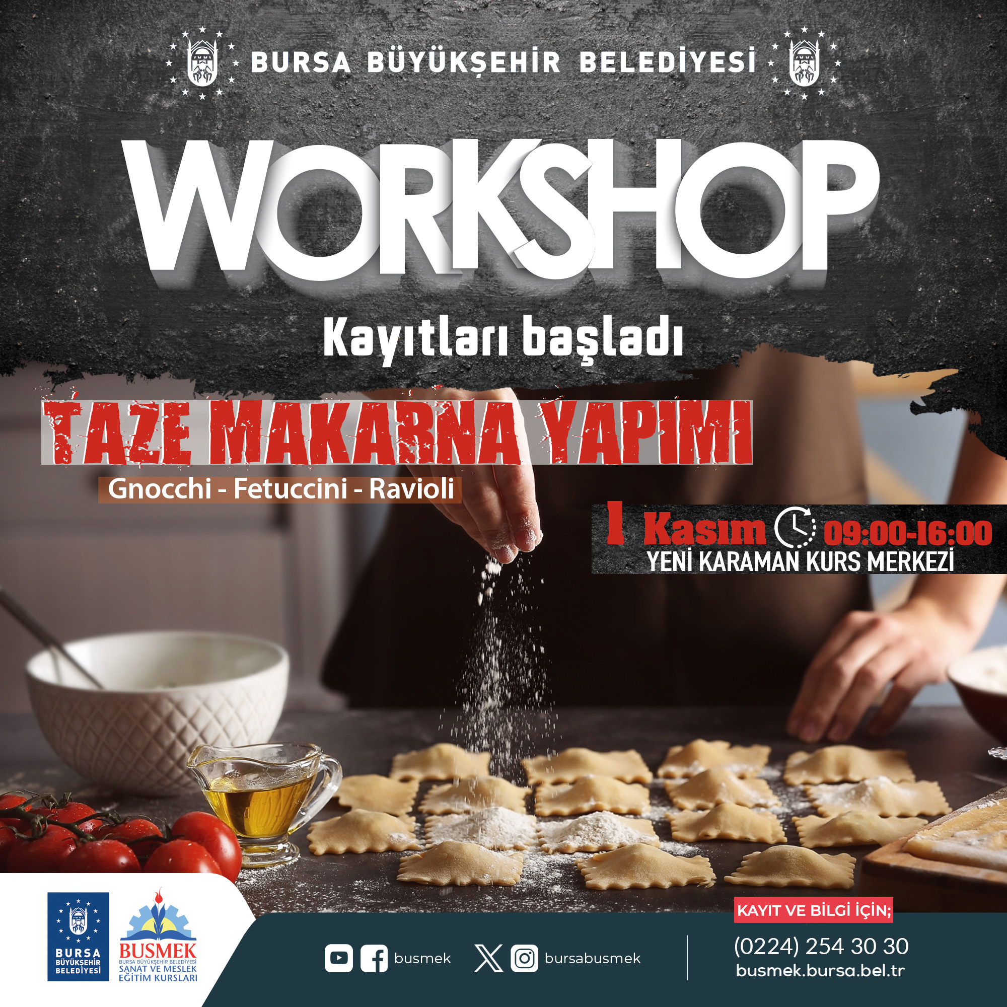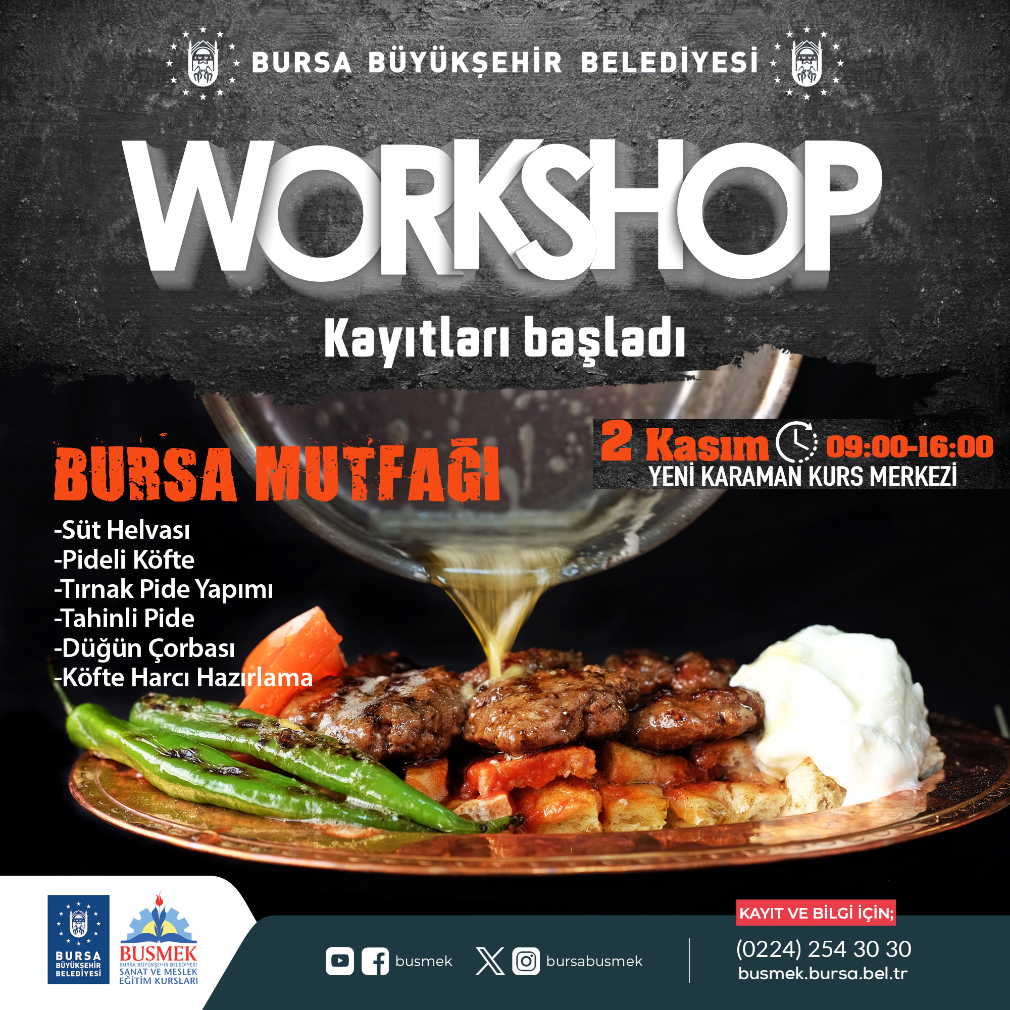 BURSA – Bursa’nın sanat ve mesleki eğitim alanında en önemli markası olan BUSMEK, mutfaktaki yeteneklerini geliştirmek ve yeni lezzetler keşfetmek isteyenleri, aşçılık ve pastacılık atölyeleri ile buluşturuyor. Yenilenen mutfağıyla Yeni Karaman Kurs Merkezi’nde 30 Ekim – 5 Kasım arasında yapılacak atölye çalışmalarına kayıtlar başladı.