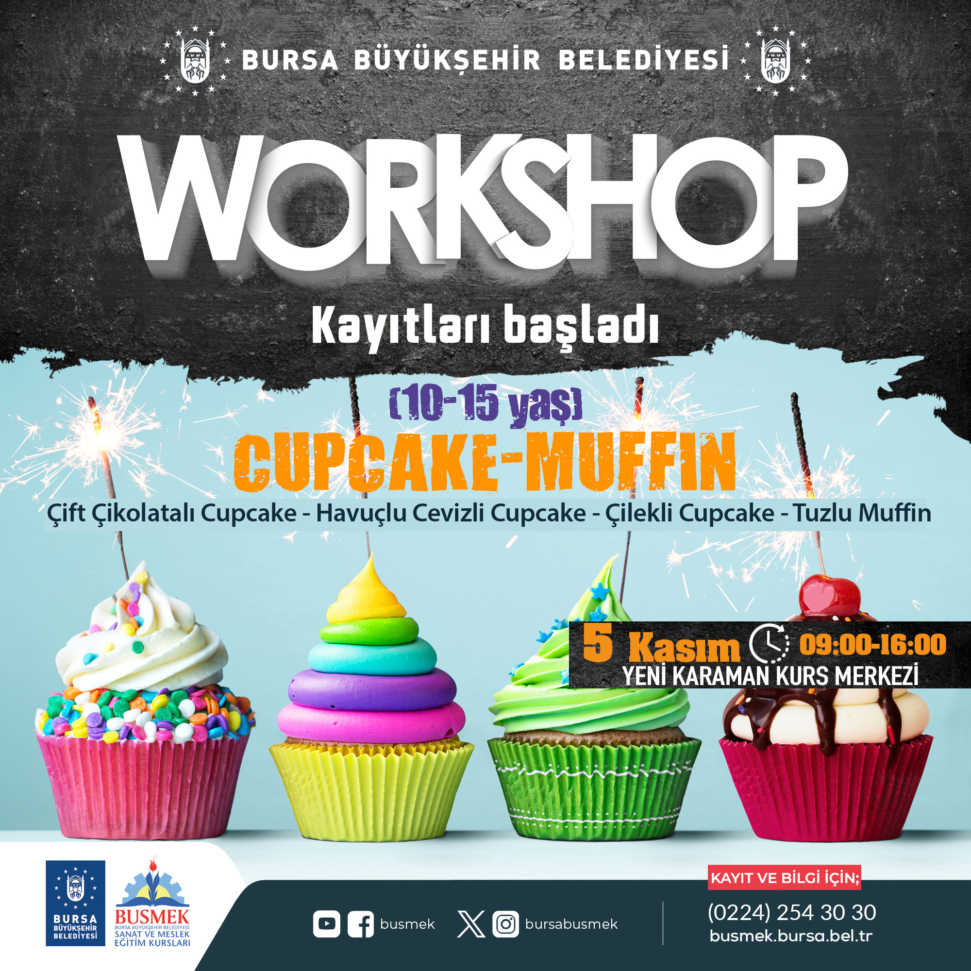 Atölyelerin pastacılık bölümünde ise, yaş pasta yapımı, sütlü tatlılar, Fransız tatlılar, çikolata butiği, popüler kurabiyeler, anne çocuk waffle-pancake yapımı (10-15 yaş) ve cupcake-muffin (10-15 yaş) eğitimleri verilecek.