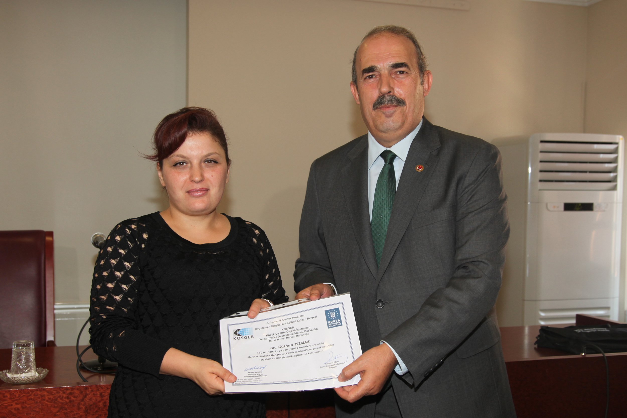 - BURSA BÜYÜKŞEHİR BELEDİYESİ İLE KOSGEB ARASINDA İMZALANAN PROTOKOLLE DÜZENLENEN UYGULAMALI GİRİŞİMCİLİK EĞİTİMİNİ BAŞARIYLA TAMAMLAYAN BUSMEK’Lİ KURSİYERLER, KENDİ İŞYERLERİNİ KURMA YOLUNDA İLK ADIMI ATMIŞ OLDU.
