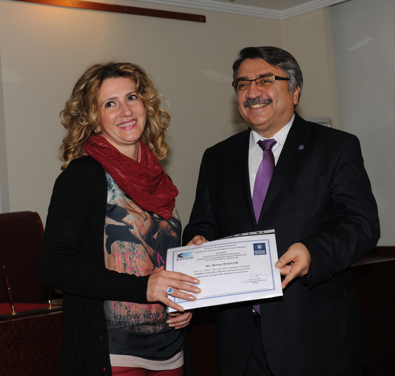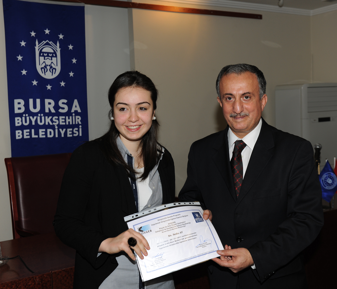 Konuşmaların ardından 90 kursiyerin katılacağı 2. Uygulamalı Girişimcilik Eğitimi protokolü Büyükşehir Belediyesi Başkanvekili Abdullah Karadağ ve KOSGEB Bursa Hizmet Merkezi Başkanı Ahmet Akdağ arasında imzalandı. Büyükşehir Belediyesi Kültür ve Sosyal İşler dairesi Başkanı Enver Karakoç’un da katıldığı törende daha sonra kursiyerlere sertifikaları verildi.