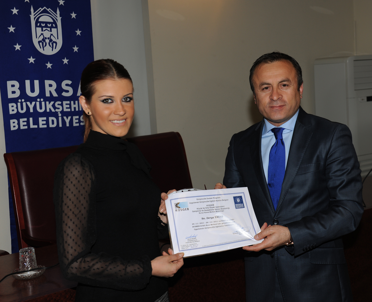 - BURSA BÜYÜKŞEHİR BELEDİYESİ İLE KOSGEB ARASINDA İMZALANAN PROTOKOLLE DÜZENLENEN UYGULAMALI GİRİŞİMCİLİK EĞİTİMİNİ BAŞARIYLA TAMAMLAYAN BUSMEK’Lİ KURSİYERLER, KENDİ İŞYERLERİNİ KURMA YOLUNDA İLK ADIMI ATMIŞ OLDU.