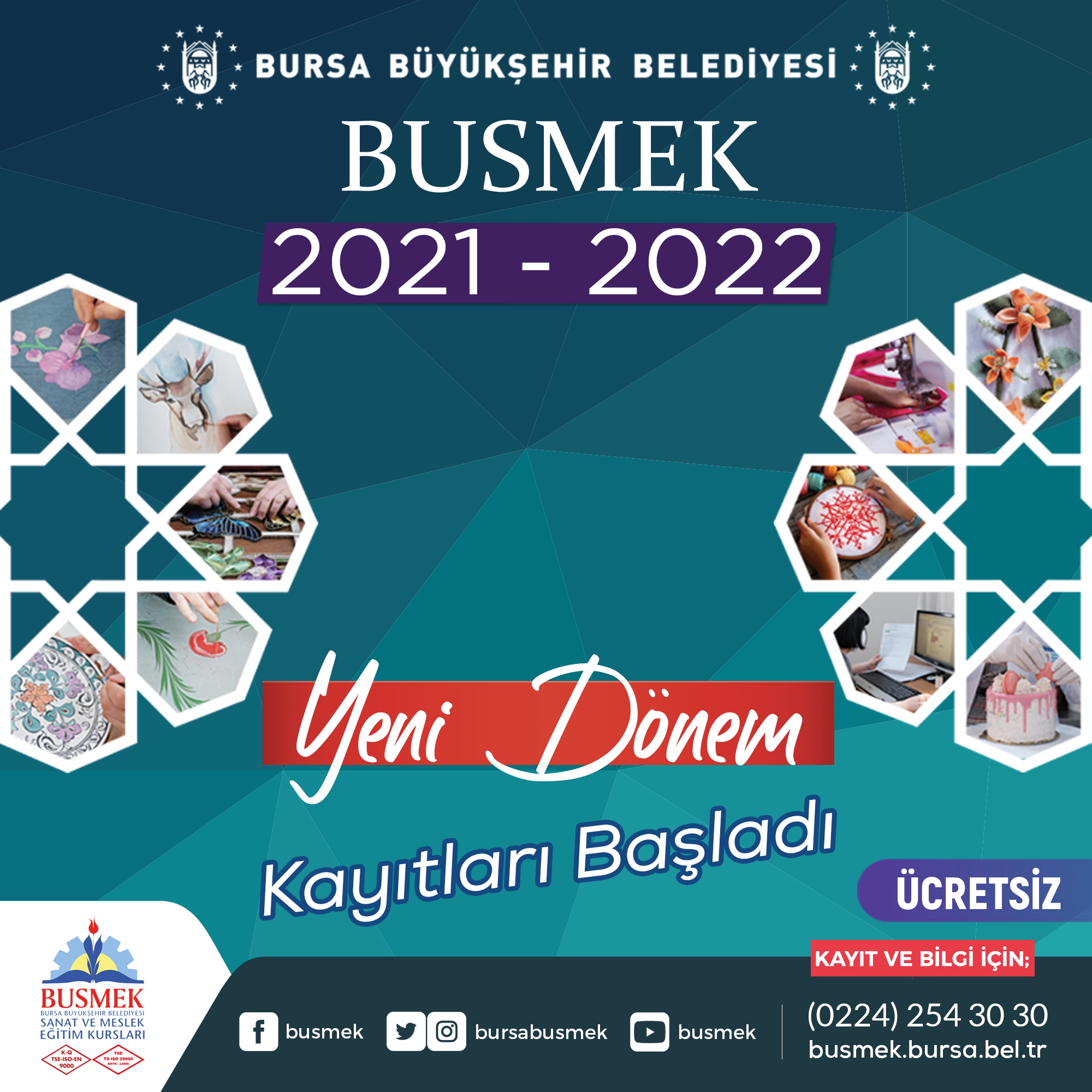 İstihdama yönelik mesleki teknik eğitimlerin yanı sıra, el sanatları, geleneksel Türk-İslam sanatları, bilişim teknolojileri, yabancı dil, kişisel gelişim gibi birçok farklı alanda eğitimler veren BUSMEK 4 Ekim’de kapısını kursiyerlere açacak.