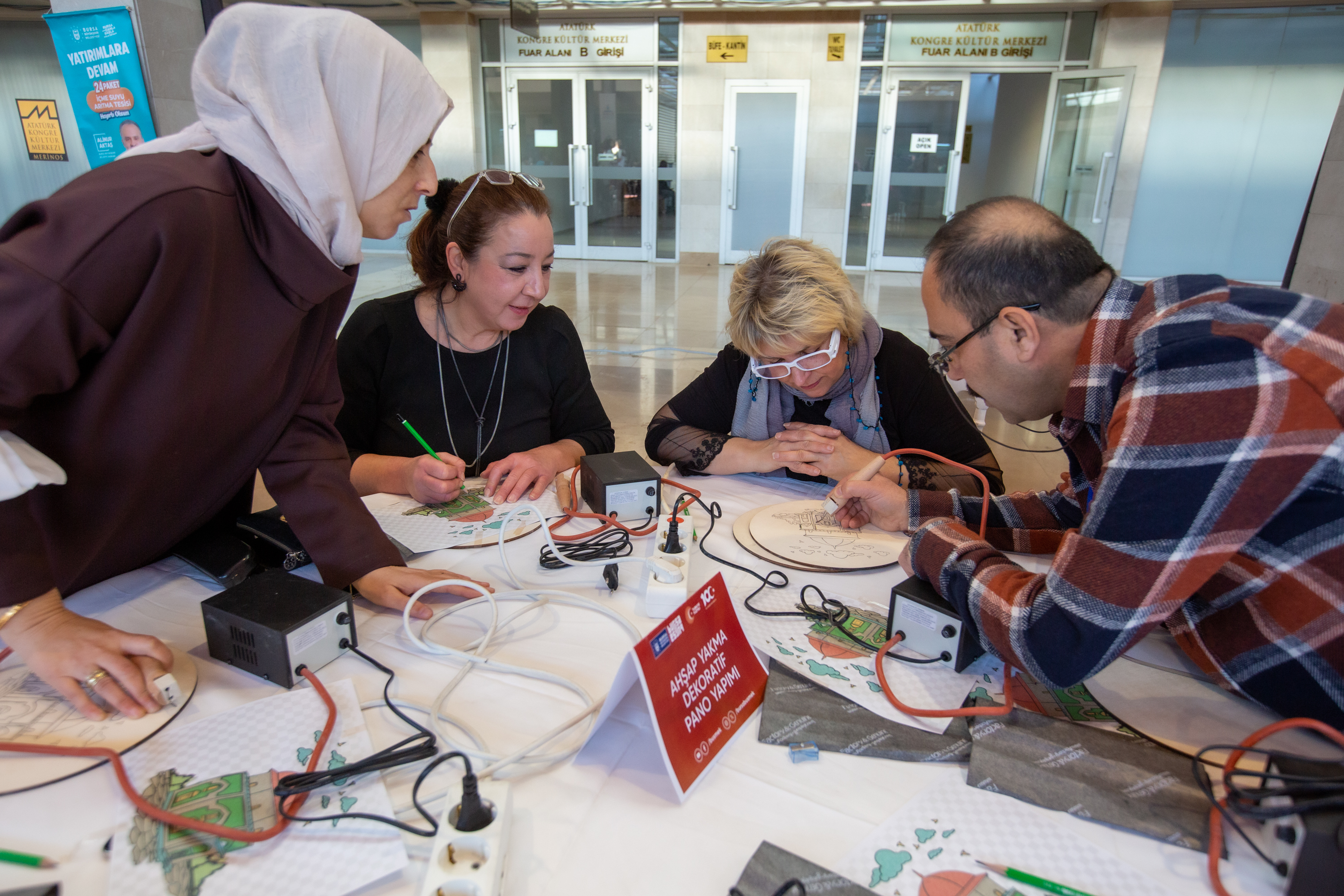 Konuşmaların ardından Başkanvekili Halide Serpil Şahin, sergi ve workshop alanlarını gezerek katılımcılarla sohbet etti.