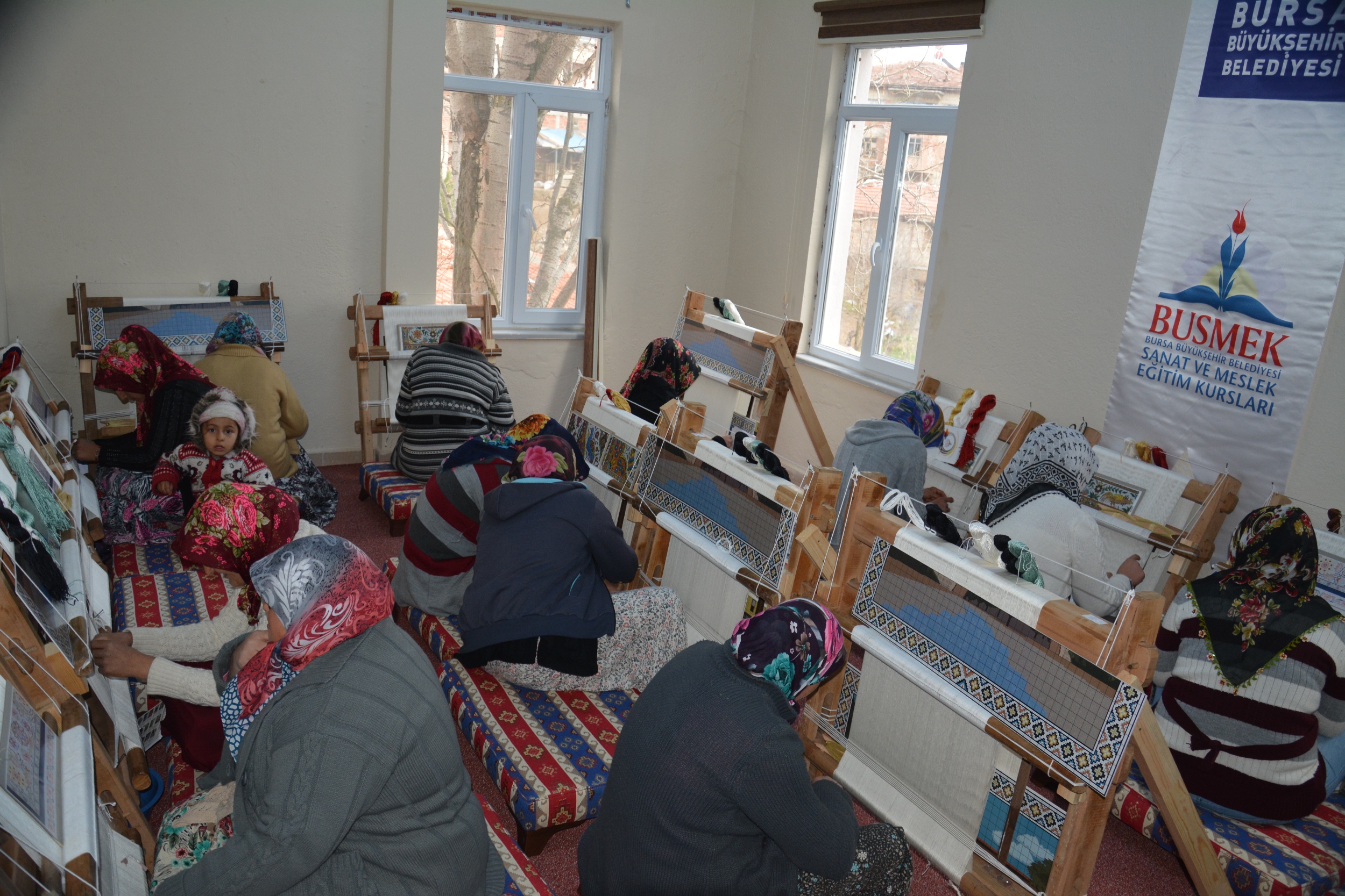 Köylerde dokunan halı ve ipek kumaşlar sayesinde, ipekten hediyelik malzeme üretimi sağlanırken bir taraftan da kırsal alanlarda istihdam ve maddi kazanç çeşitliliğin arttırılması hedefleniyor. BUSMEK, kursiyerlere tezgâh, iplik ve kurs imkânı sunarak, birbirinden güzel halıların dokunmasını sağlıyor.