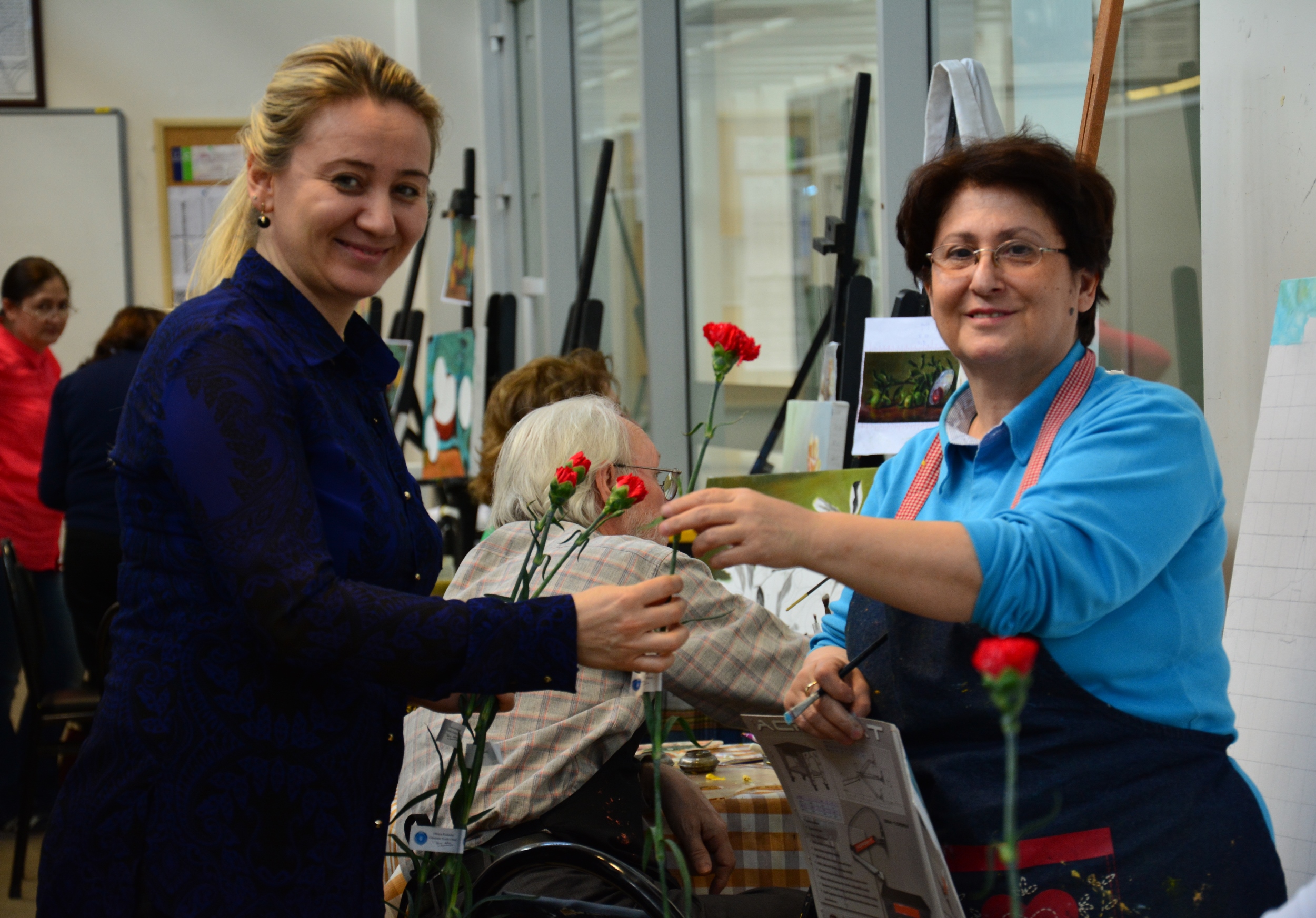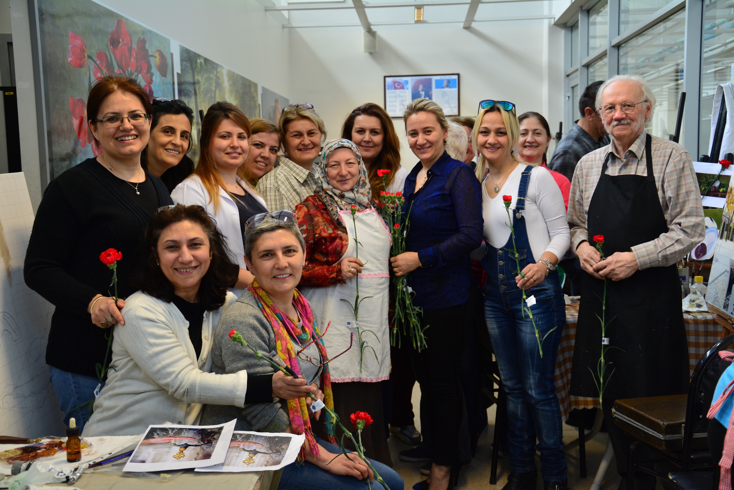 BURSA – ‘8 Mart Dünya Kadınlar Günü’ nedeniyle BUSMEK öğretmenleri, çalışanları ve kursiyerlerine kırmızı karanfiller dağıtıldı.