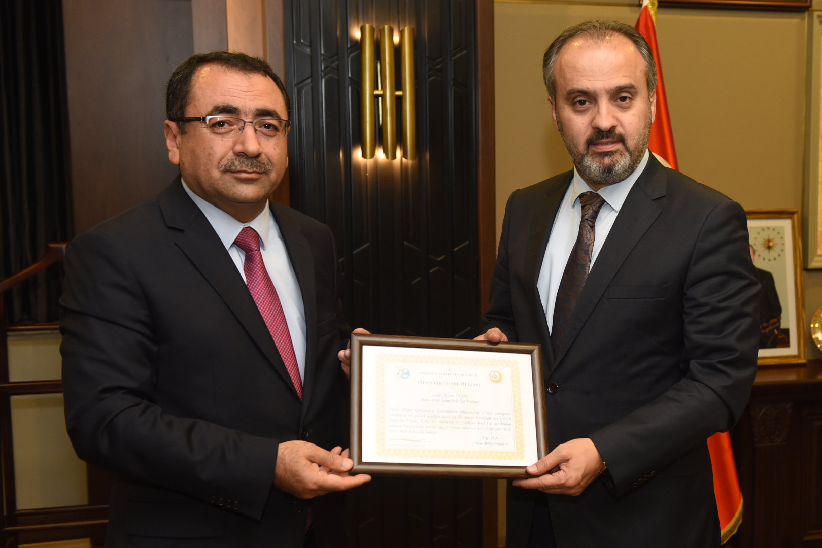 Ziyaretin sonunda Orman Bölge Müdürü Arif Can, fidan dikim sertifikasını Başkan Aktaş’a teslim etti.