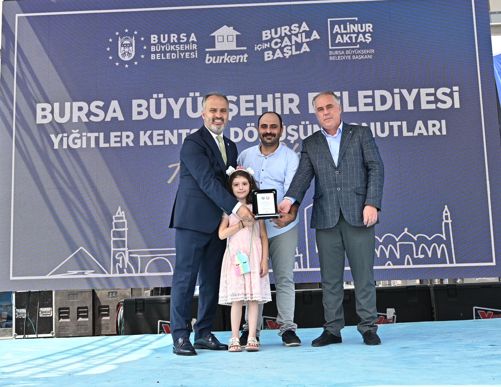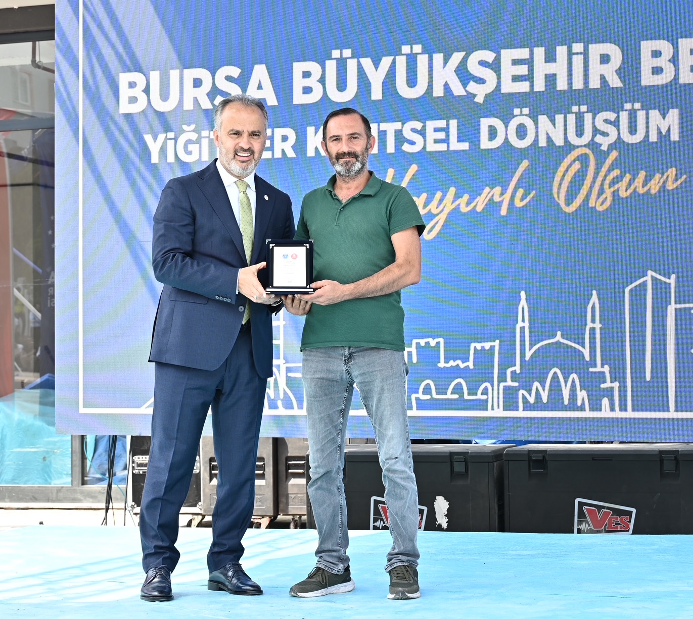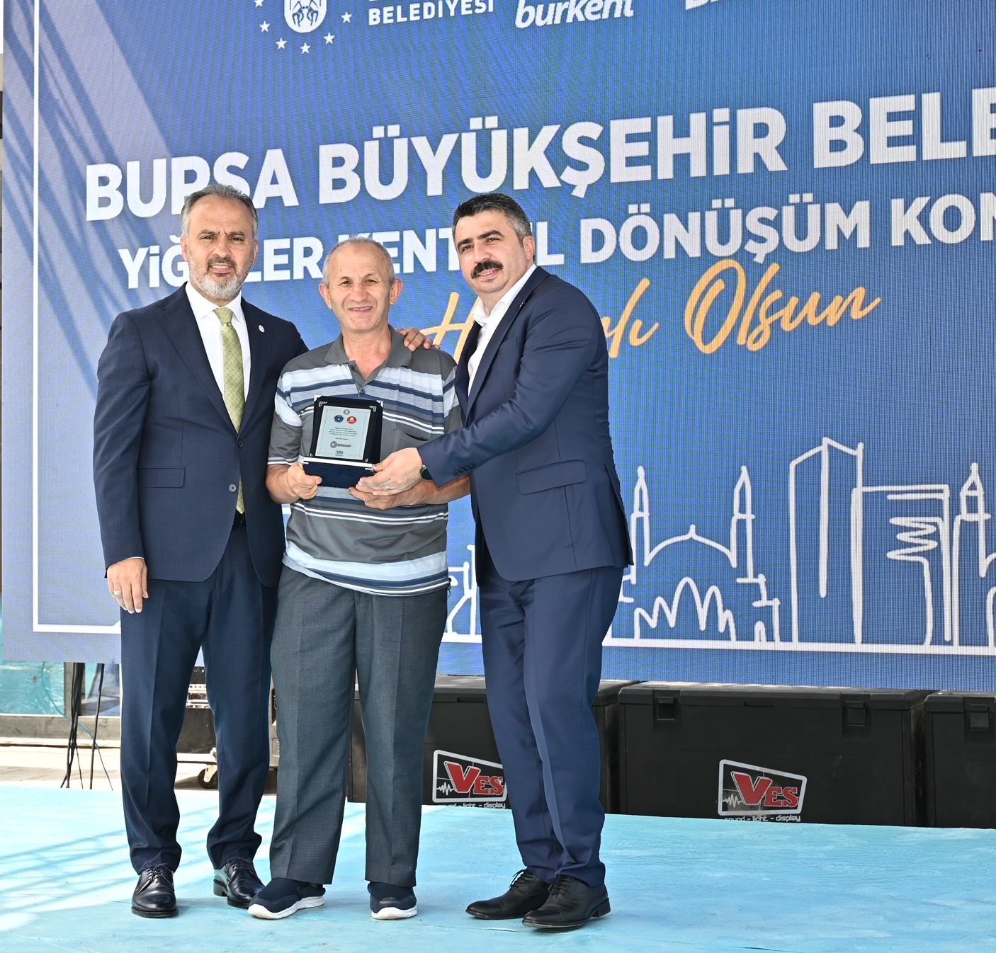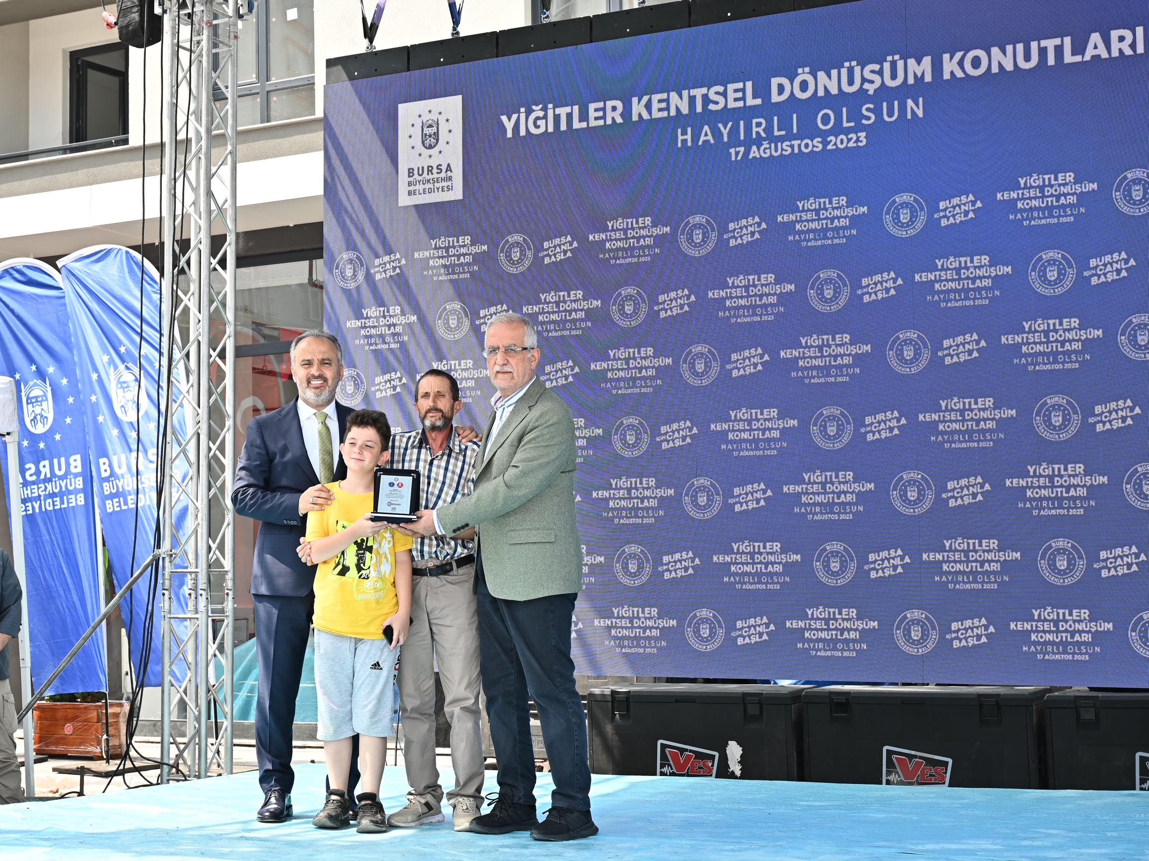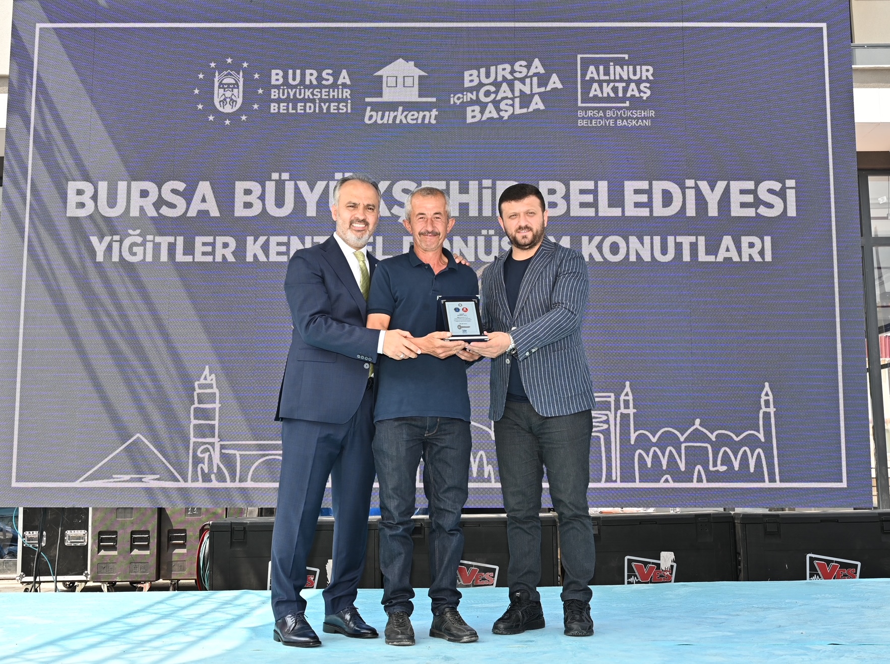 BURSA – Bursa’nın depreme karşı dirençli kent haline getirilmesi amacıyla 7 ayrı bölgede kentsel dönüşüm projelerini kesintisiz sürdüren Büyükşehir Belediyesi, Yiğitler Kentsel Dönüşümü’nde ilk konutları düzenlenen törenle hak sahiplerine teslim etti. Kentsel dönüşüm çalışmalarının artık kartopundan çığa dönüştüğünü belirten Büyükşehir Belediye Başkanı Alinur Aktaş, “Değirmenönü’nde, Karapınar’da, Ulus’ta, Arabayatağı’nda, Beşyol’da, İstanbul Caddesi’nde, Gaziakdemir’de, Sıcaksu’da, 1050 Konutlar’da dönüşüm var. Allah’ın izniyle Altıparmak’ta da olacak” dedi.