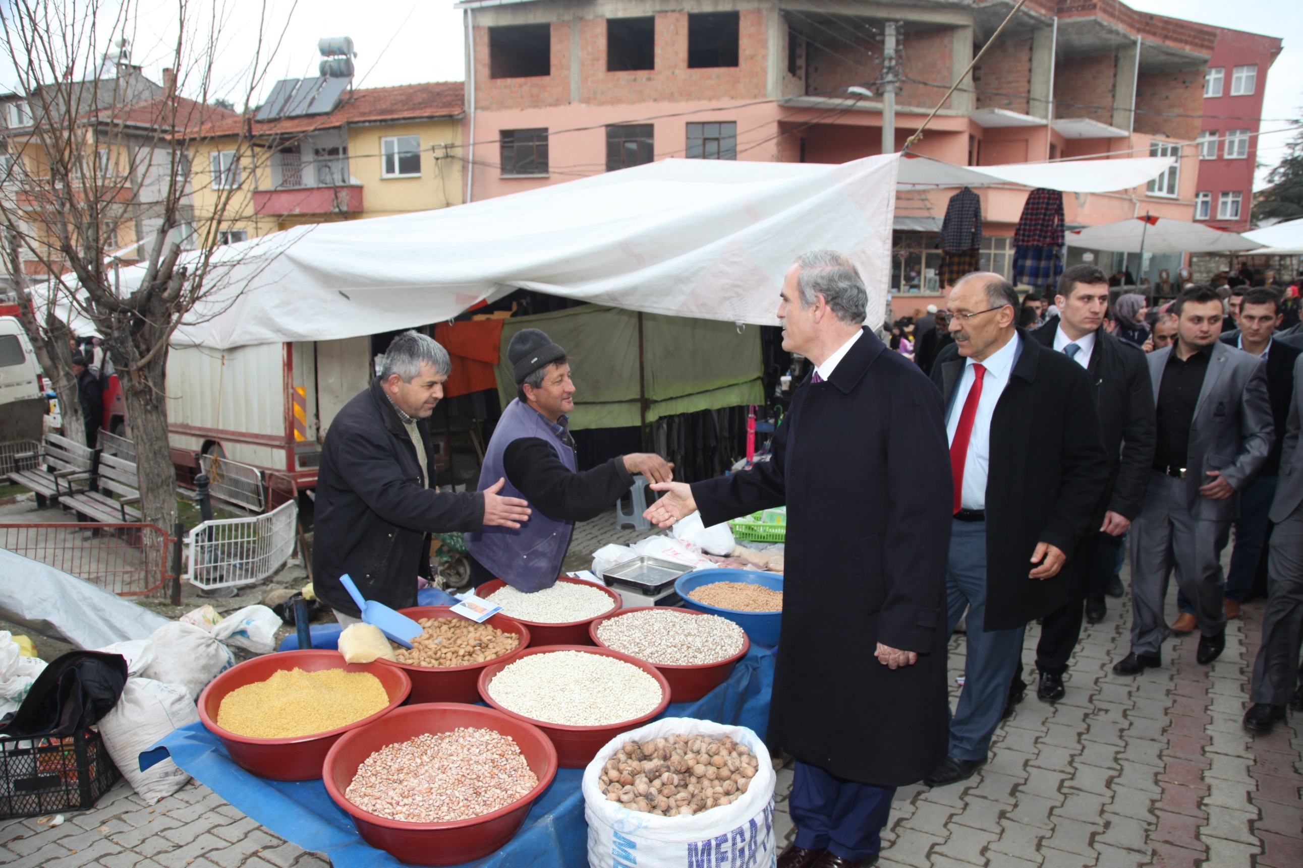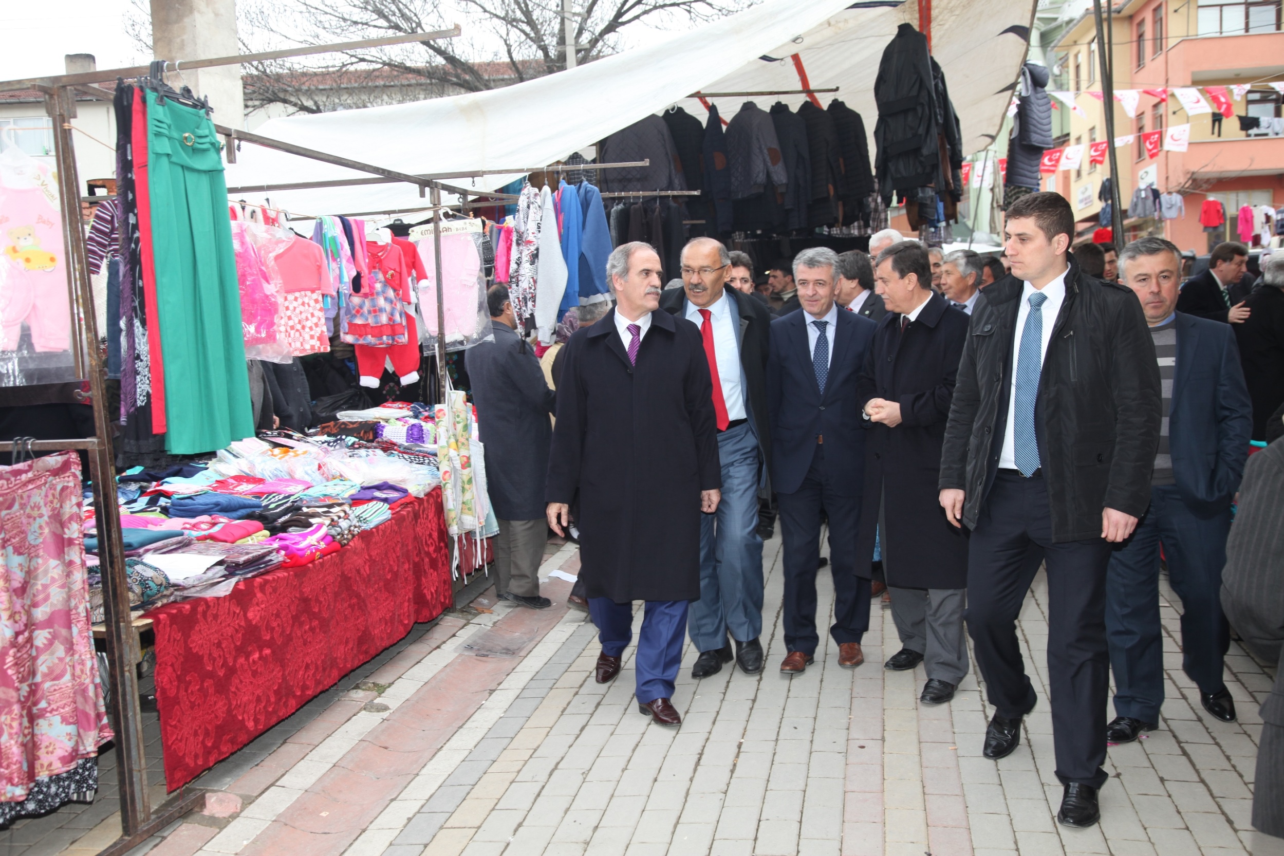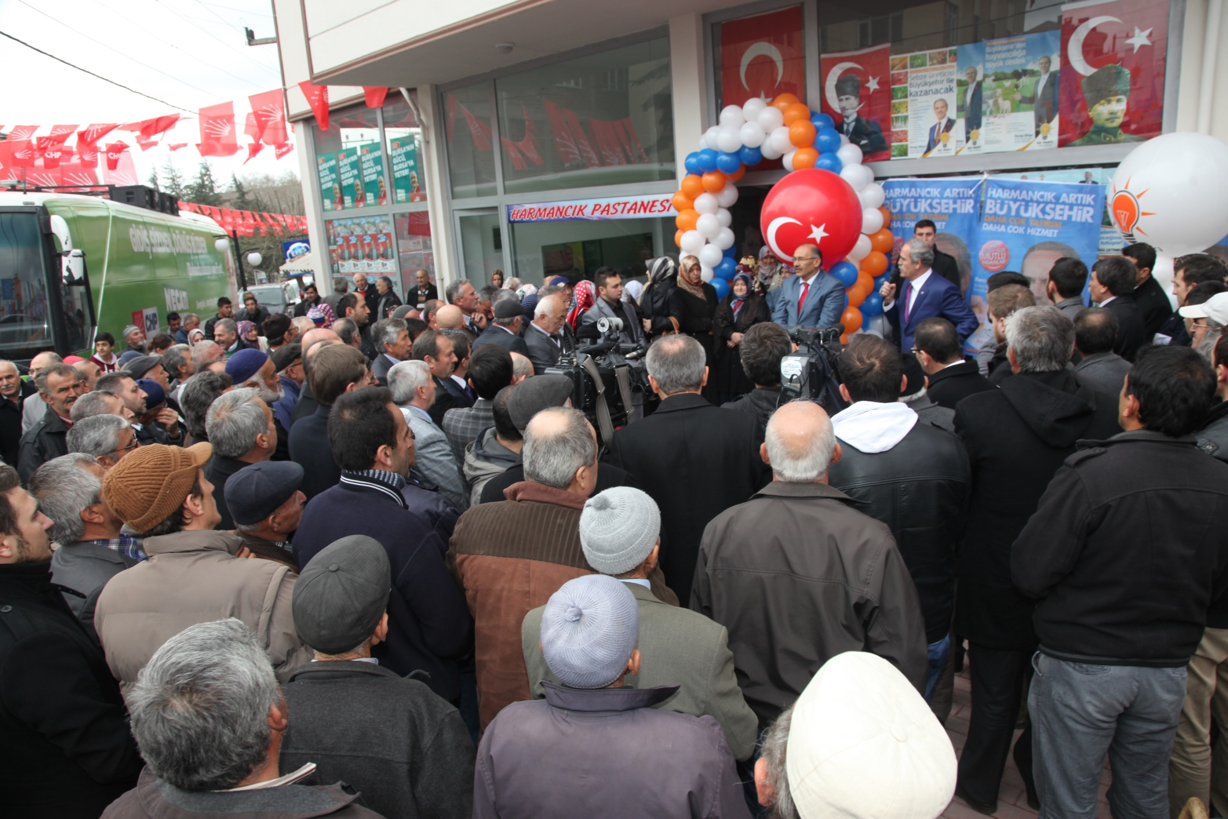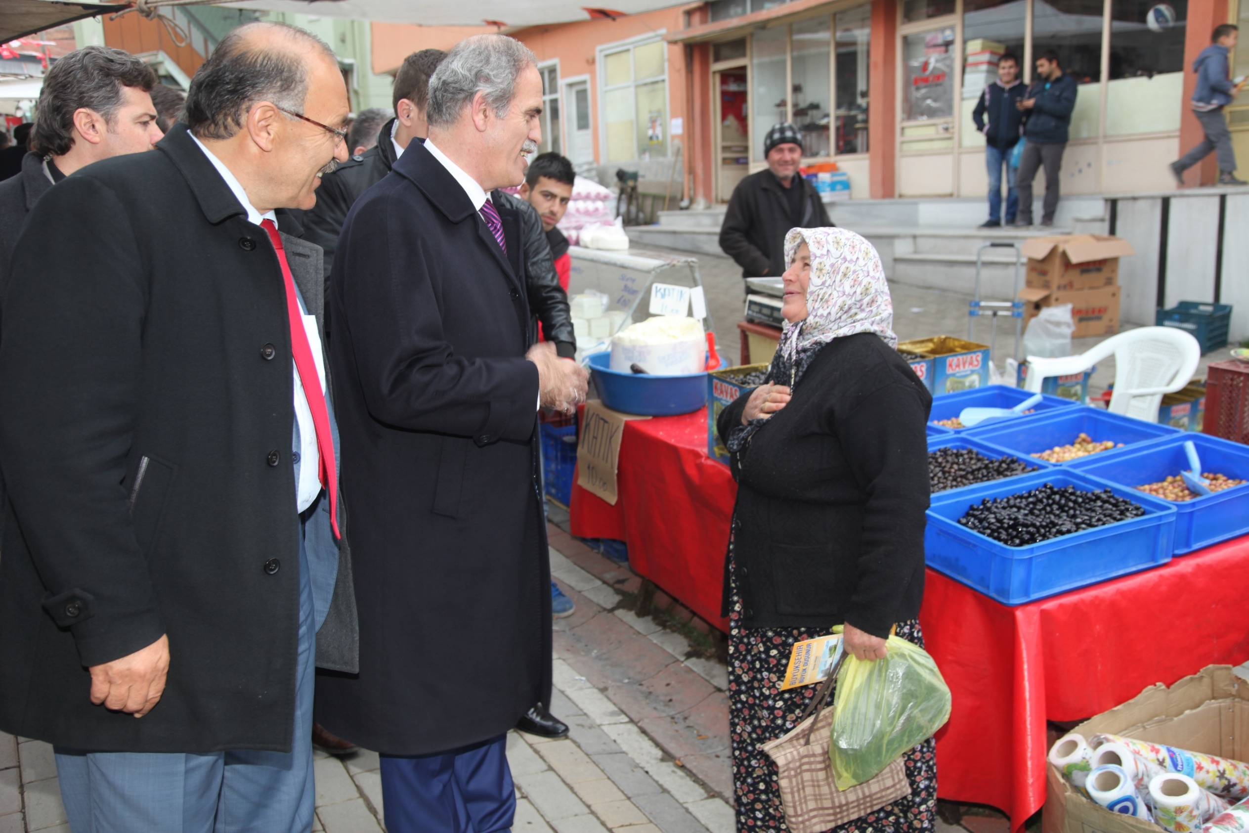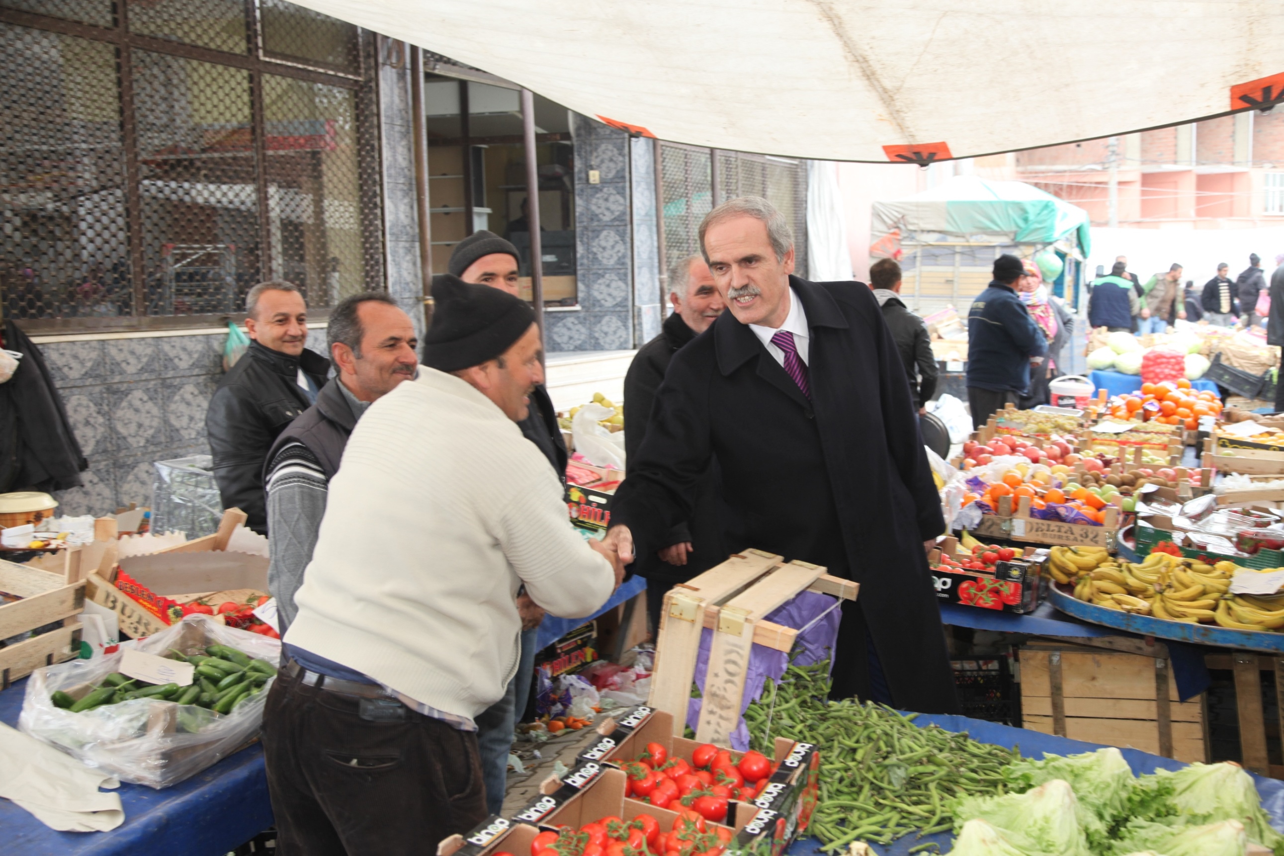 Başkan Altepe, Harmancık Belediye Başkanı Mustafa Çetinkaya ile birlikte seçim bürosunun açılışını yaptıktan sonra ilçede kurulan pazarı gezip, esnaf ve vatandaşlarla sohbet etti.