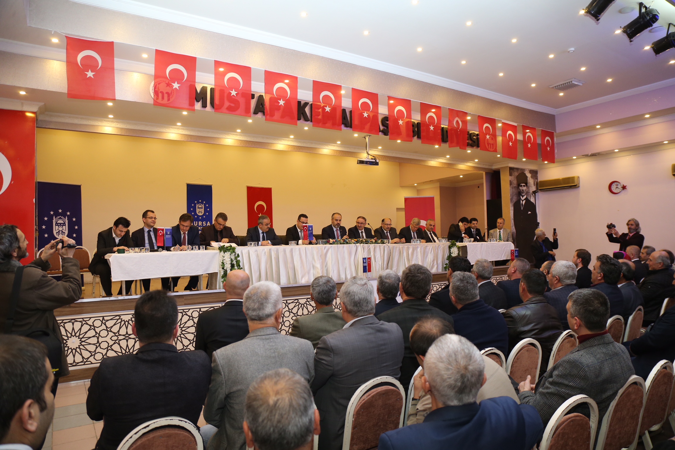 Bursa’nın tüm ilçelerine hizmetlerini ulaştıran Büyükşehir Belediyesi, ilçelere yönelik değerlendirme toplantılarının 6.’sını Mustafakemalpaşa İlçesi’ne gerçekleştirdi. Büyükşehir Belediye Başkanı Alinur Aktaş, toplantıya katılan 117 muhtara, ilçede yapılan, devam eden ve yapılacak olan çalışmalar hakkında bilgi verdi. Muhtarların da mahallelerindeki sıkıntılarını dile getirdiği toplantıda, ağırlıklı olarak altyapı, ulaşım ve sulama konularında bildirimler alındı.