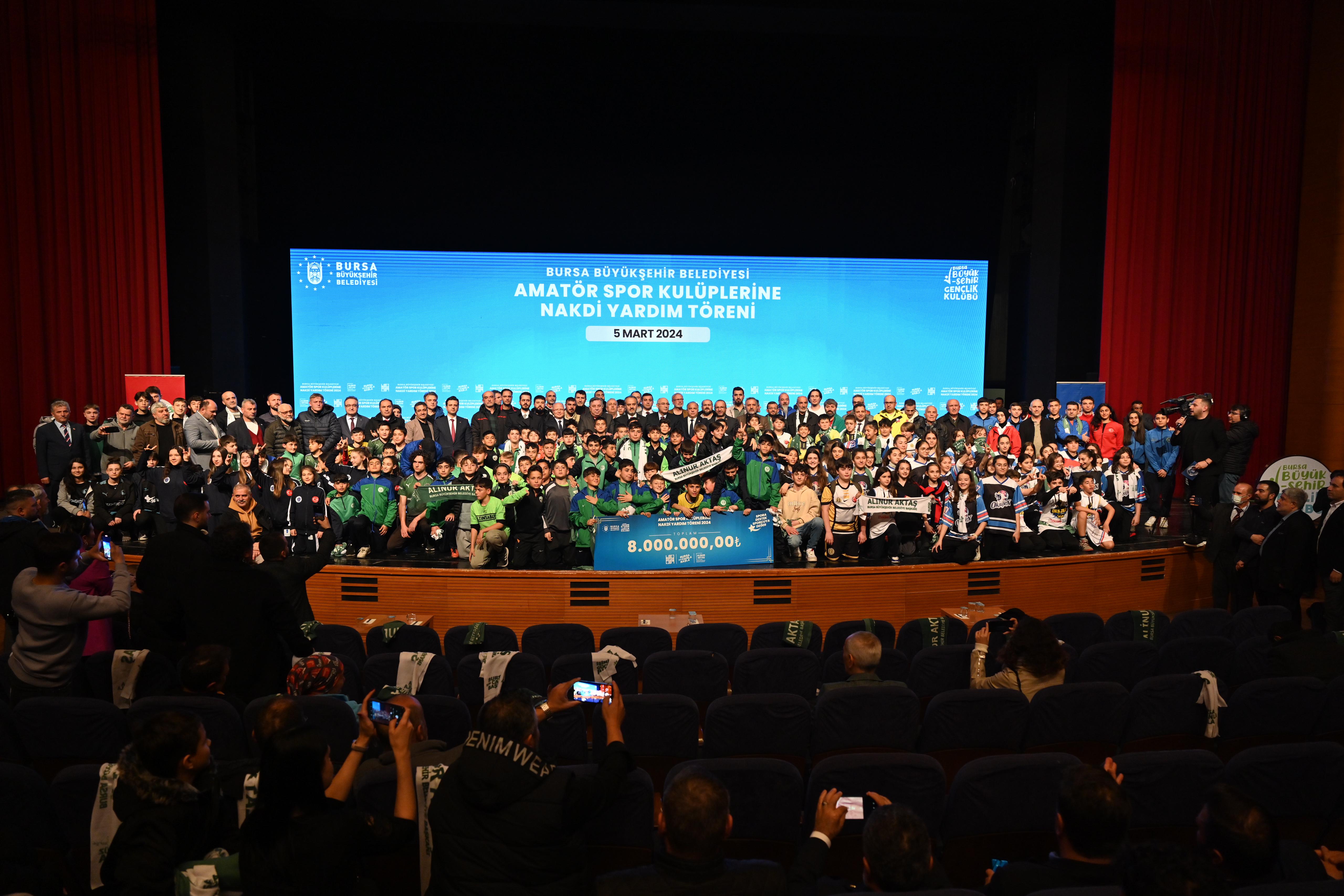 BURSA – Bursa’da sporun ve sporcunun her zaman yanında olan Büyükşehir Belediyesi, 533 amatör spor kulübüne toplam 8 milyon TL nakdi yardımda bulundu. Bursa’nın spor anlamında tek gönül yarasının Bursaspor olduğunu söyleyen Büyükşehir Belediye Başkanı Alinur Aktaş, “Hiç kimse hamasi nutuklarla Bursaspor’la alakalı siyaset yapmayacak. Herkes taşın altına elini koyacak. Ben Bursasporluluk sıfatımla üzerime düşen ne görev varsa sonuna kadar yapacağım” dedi.
