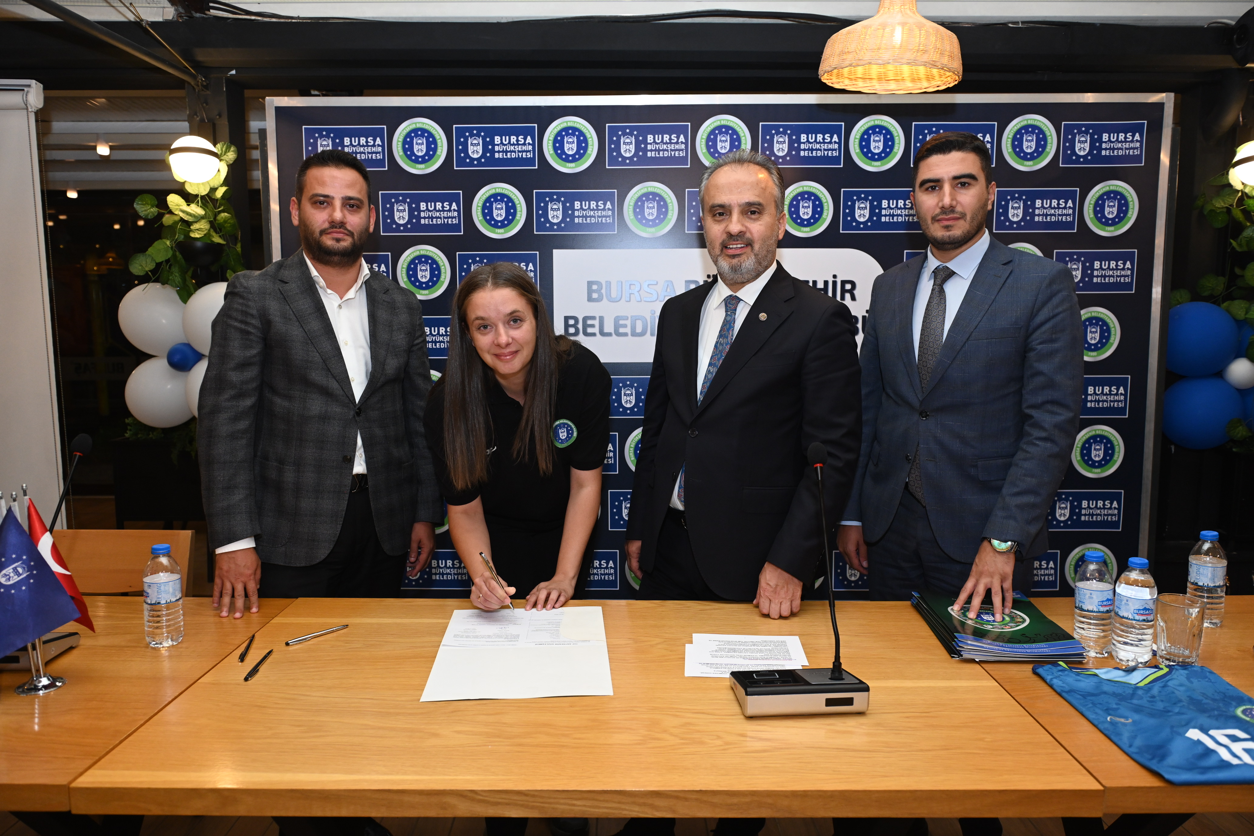 Bursa’nın sporda da marka kent olması için eğitim kurumlarına spor salonları, amatör kulüplere saha ve tesisler, malzeme ve nakit destekleri sağlayan Büyükşehir Belediyesi, diğer taraftan sporcu ve sağlıklı nesil yetişmesi amacıyla gençleri sporla buluşturmaya devam ediyor. Toplam 23 farklı branşta ‘150’si milli sporcu olmak üzere’ yaklaşık 2 bin lisanslı sporcusu bulunan Bursa Büyükşehir Belediyespor Kulübü, 24’üncü branş olarak hentbolu da bünyesine kattı. ‘Kadınlar Hentbol 1. Ligi’nde mücadele eden’ Mudanya takımı sporcularını Büyükşehir ailesine katan sözleşme; BURFAŞ Mudanya Sosyal Tesisleri’nde Büyükşehir Belediye Başkanı Alinur Aktaş, Büyükşehir Belediyespor Kulübü Başkanı Gökhan Dinçer, kulüp yönetim kurulu üyeleri, sporcular ve ailelerinin katıldığı törenle imzalandı.