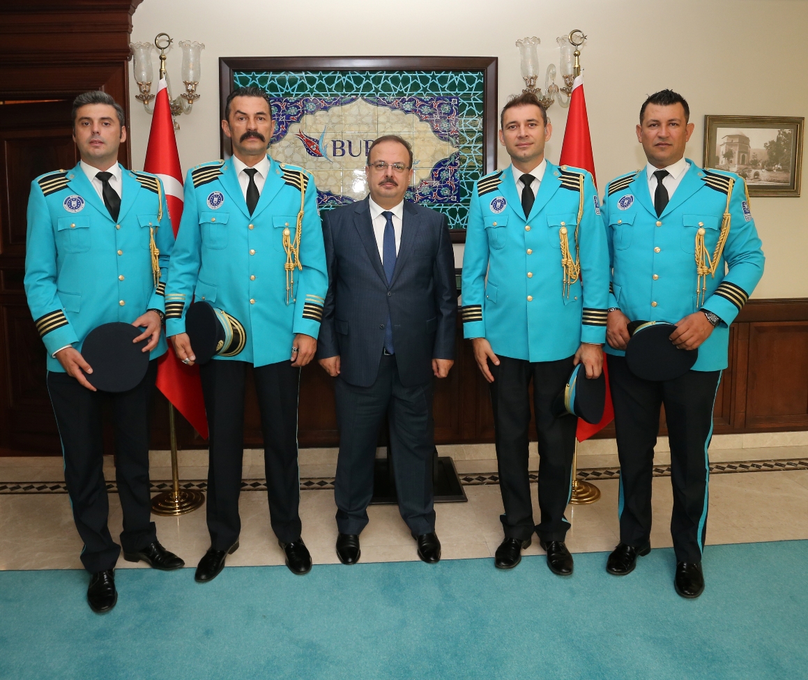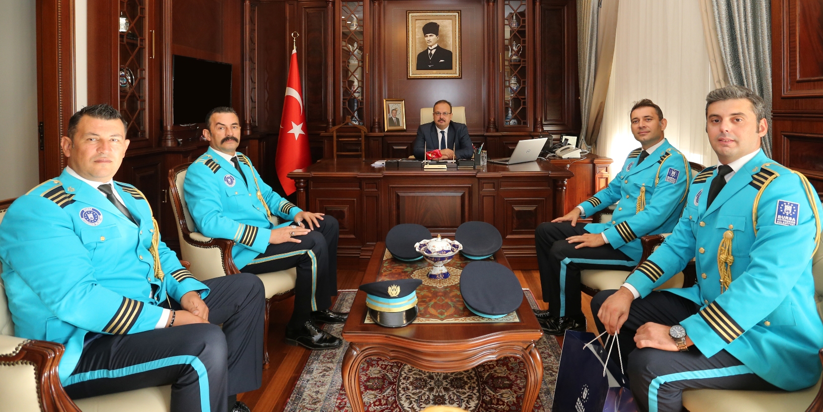 Bursa’da belediye bünyesinde 1936 yılında kurulan ve o günden buyana aralıksız olarak faaliyetlerine devam eden Büyükşehir Belediye Bandosu, kuruluşunun 83’üncü yıldönümü nedeniyle kent yöneticilerini ziyaret etti. Büyükşehir Belediye Bandosu Şefi Şaban Gülşen ve ekibinin ilk durağı Bursa Valiliği oldu. Vali Yakup Canbolat tarafından oldukça sıcak karşılanan bandocular gün boyu Büyükşehir Belediyesi Başkanvekili Süleyman Çelik, İl Emniyet Müdürü Tacettin Aslan, Başsavcı vekili Hasan Yalçın, Işıklar Jandarma Astsubay Meslek Yüksekokulu Komutanı Jandarma Kıdemli Albay Mehmet Çimen ve Bursa Garnizon Komutanı Albay Sacit Sabuncu’yu da makamlarında ziyaret etti.