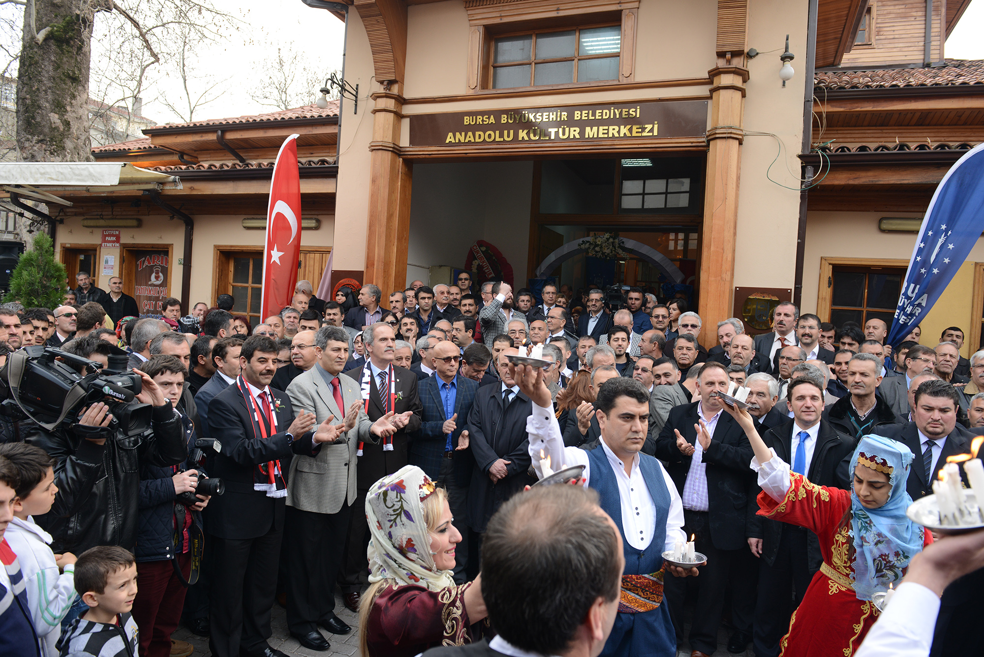Bursa İl Dernekleri Federasyonu Başkanı Mustafa Dursun da 25 il derneğinden oluşan federasyonun Anadolu’nun kardeşliğinin, kültürünün, birlik ve beraberliğinin mekanla artacağına işaret ederek, Anadolu derneklerinin kaynaşması için gerekli olan mekanın yıllardır beklenen bir hizmet olduğunu söyledi. Mekanda her hafta farklı bir derneğin yöresel kültürünü tanıtacağını anlatan Dursun, bu merkezi hayata geçiren Başkan Altepe’ye teşekkür ederek, çiçek verdi. Tahtakale Mahallesi Muhtarı Mehmet Yavuz da çalışmalarından dolayı Altepe’ye teşekkür etti. AK Parti İl Başkanı Cemalettin Torun ile Bursa Kent Konseyi Başkanı Semih Pala ve Büyükşehir Belediyesi bürokratlarının da katıldığı, hemşehri dernekleri üyeleri ve vatandaşlarının yoğun ilgi gösterdiği tören, Kütahya, Tokat Turhal, Elazığ ve Edirne yörelerinin halk oyunları gösterileriyle renklendi. Başkan Altepe ve protokol üyeleri, kurdele kesimiyle açılışı yapılan Anadolu Kültür Merkezi’ni de gezerek, il derneklerinin yöresel kültürlerini gözlemlediler.