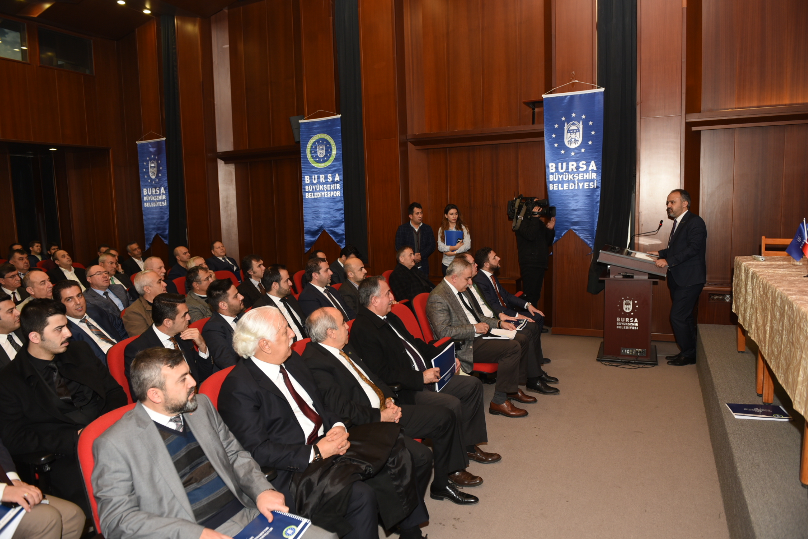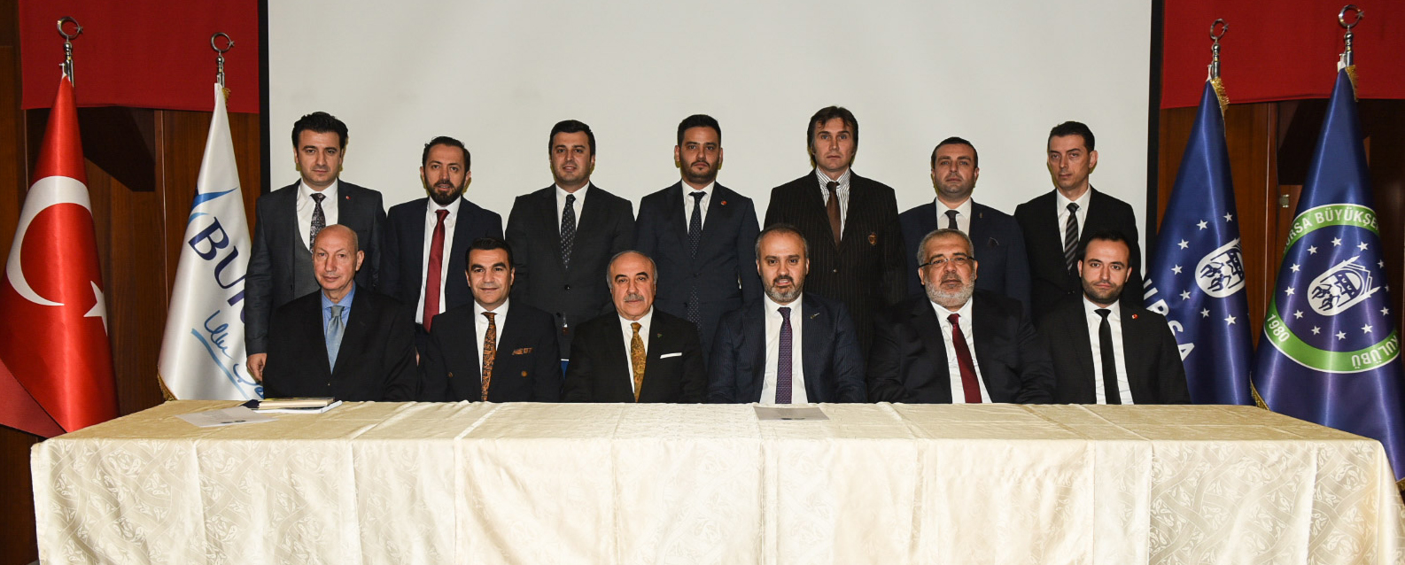 Aktaş’ın konuşmasının ardından Bursa Büyükşehir Belediyespor Kulübü yeni Yönetim Kurulu üyeleri günün anısına fotoğraf çektirdi.